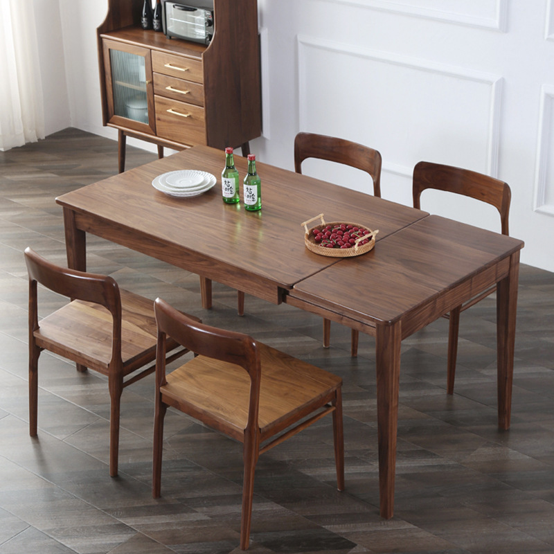 黒胡桃木伸縮食卓実木長方形延長食卓北欧家庭用小戸型折り畳みテーブル