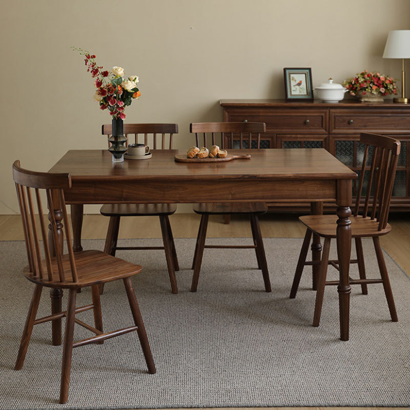 実木食卓アメリカ式食卓黒胡桃木食台レトロフレンチテーブルと椅子の組み合わせ長方形テーブル中古