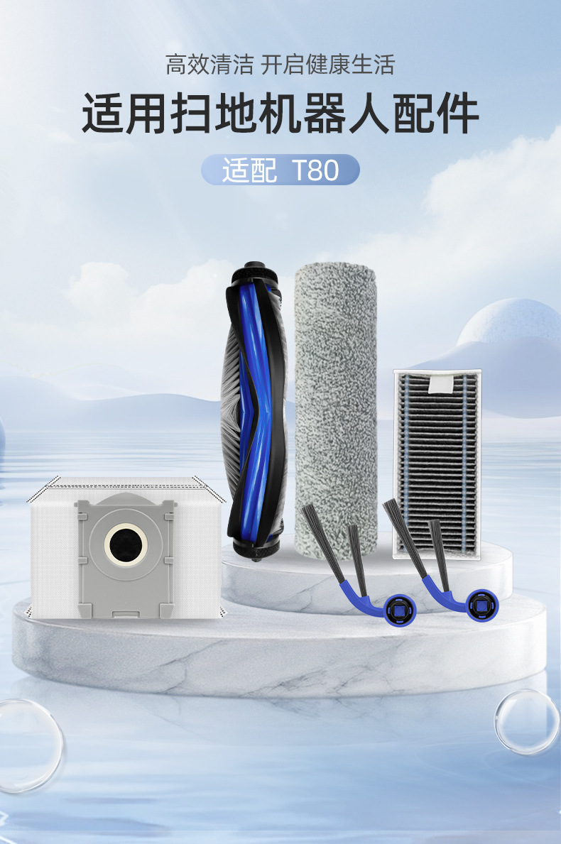 适配科沃斯T80扫地机器人配件边刷滚刷过滤网集尘袋耗材hepa拖布