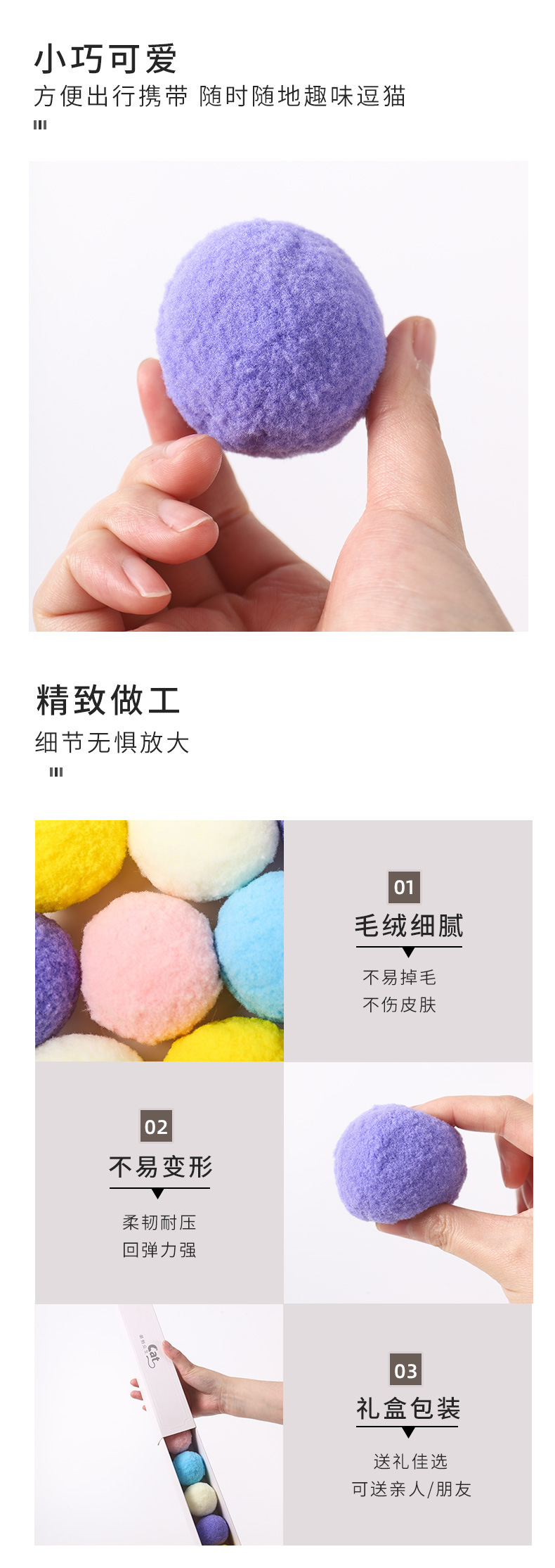 カラーの毛玉の猫のおもちゃの猫の自ハイの毛のボールのギフトボックスの猫はボールをつかんで猫の丈夫なペット用品を笑わせます。
