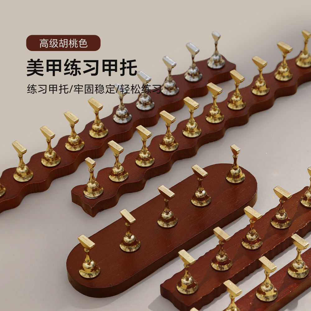 ネイルアートエクササイズの台座は日本のシンプルな胡桃の木の金属の強い磁気の甲が身につけて甲を展示します。