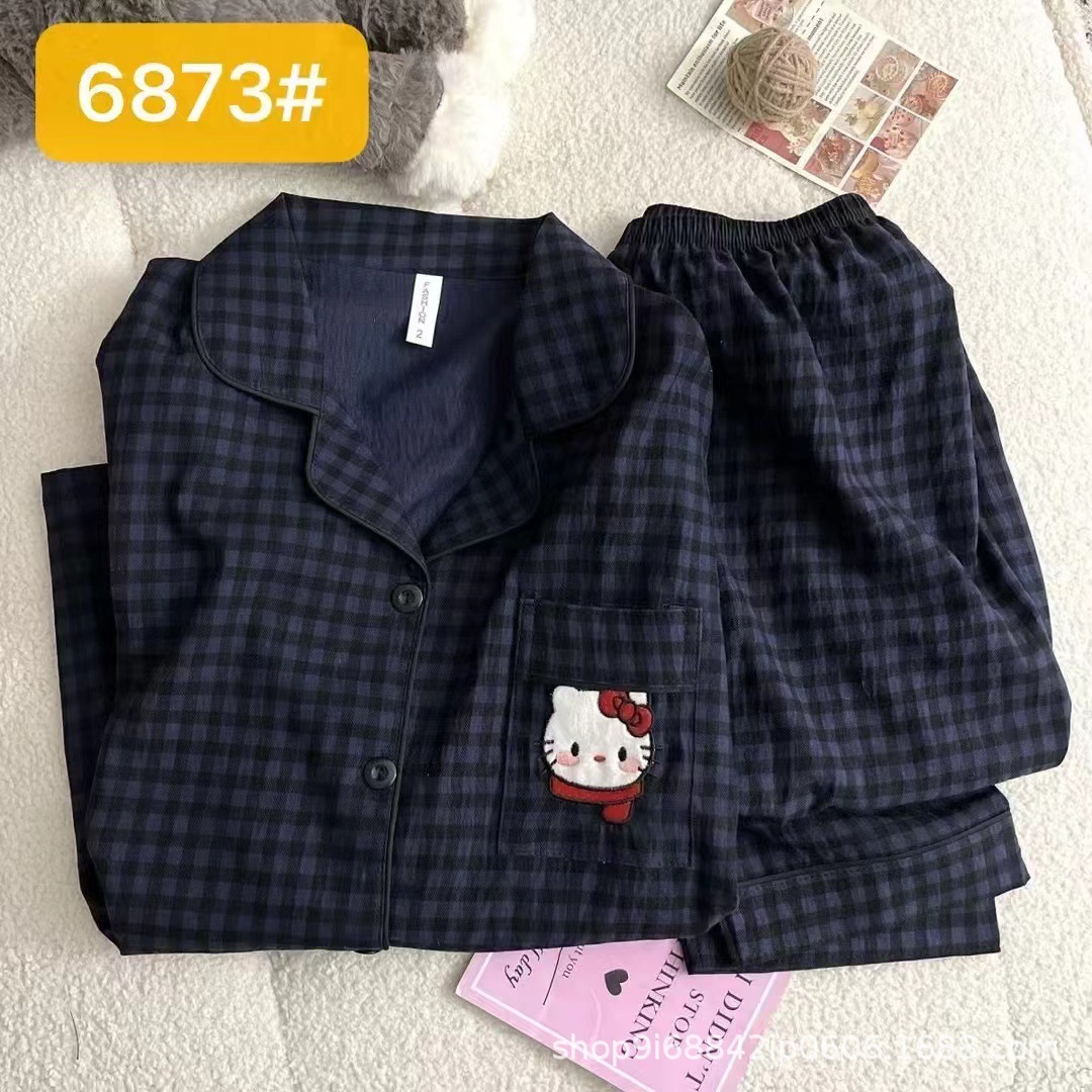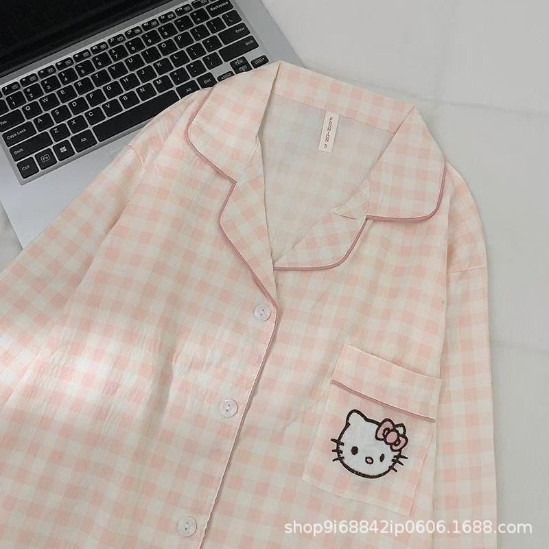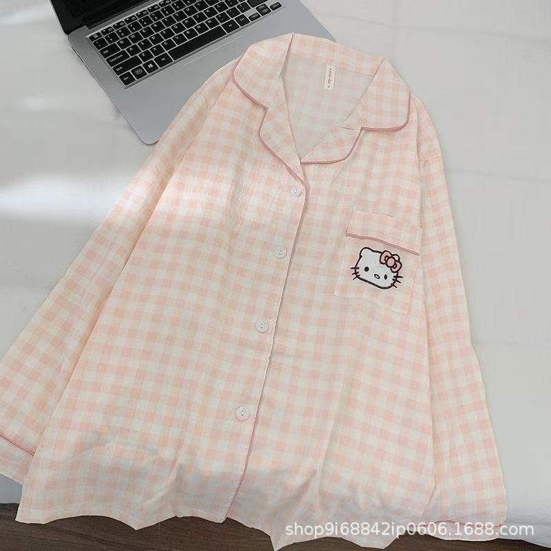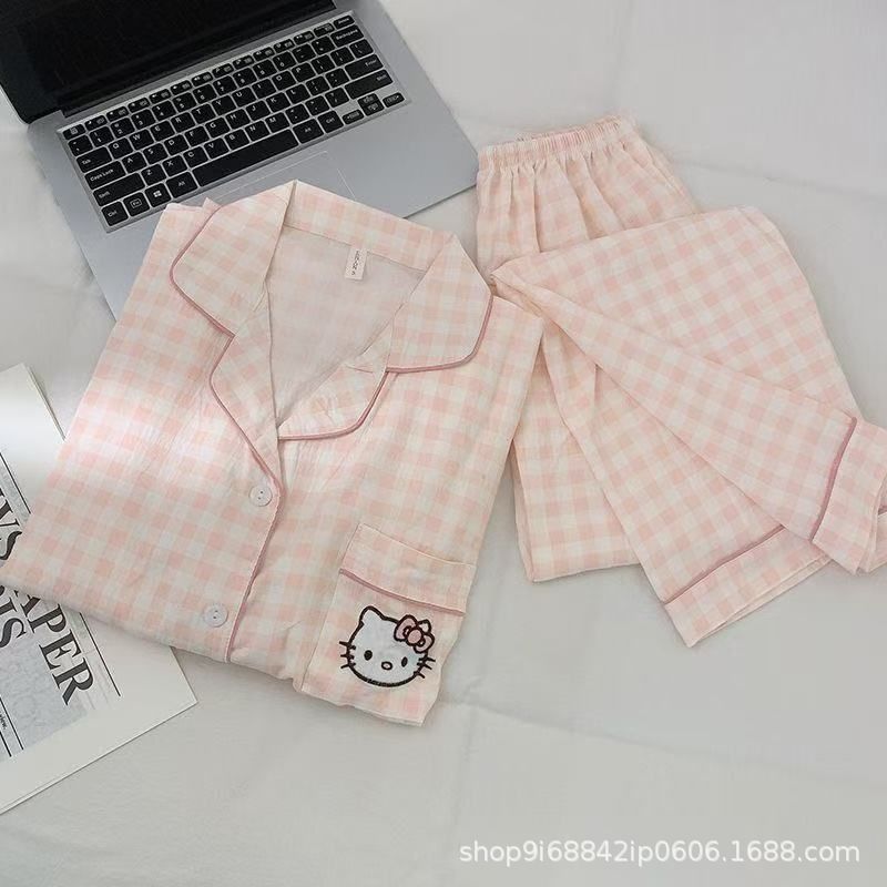卸売価格クラウドコットンハローキティ長袖ズボン薄いパジャマ女性のための春と秋の甘いホーム服女性のための