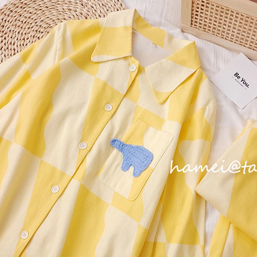 工場現物雲綿半袖半ズボンセットホームウェア漫画襟折りカーディガンかわいい甘いパジャマ女