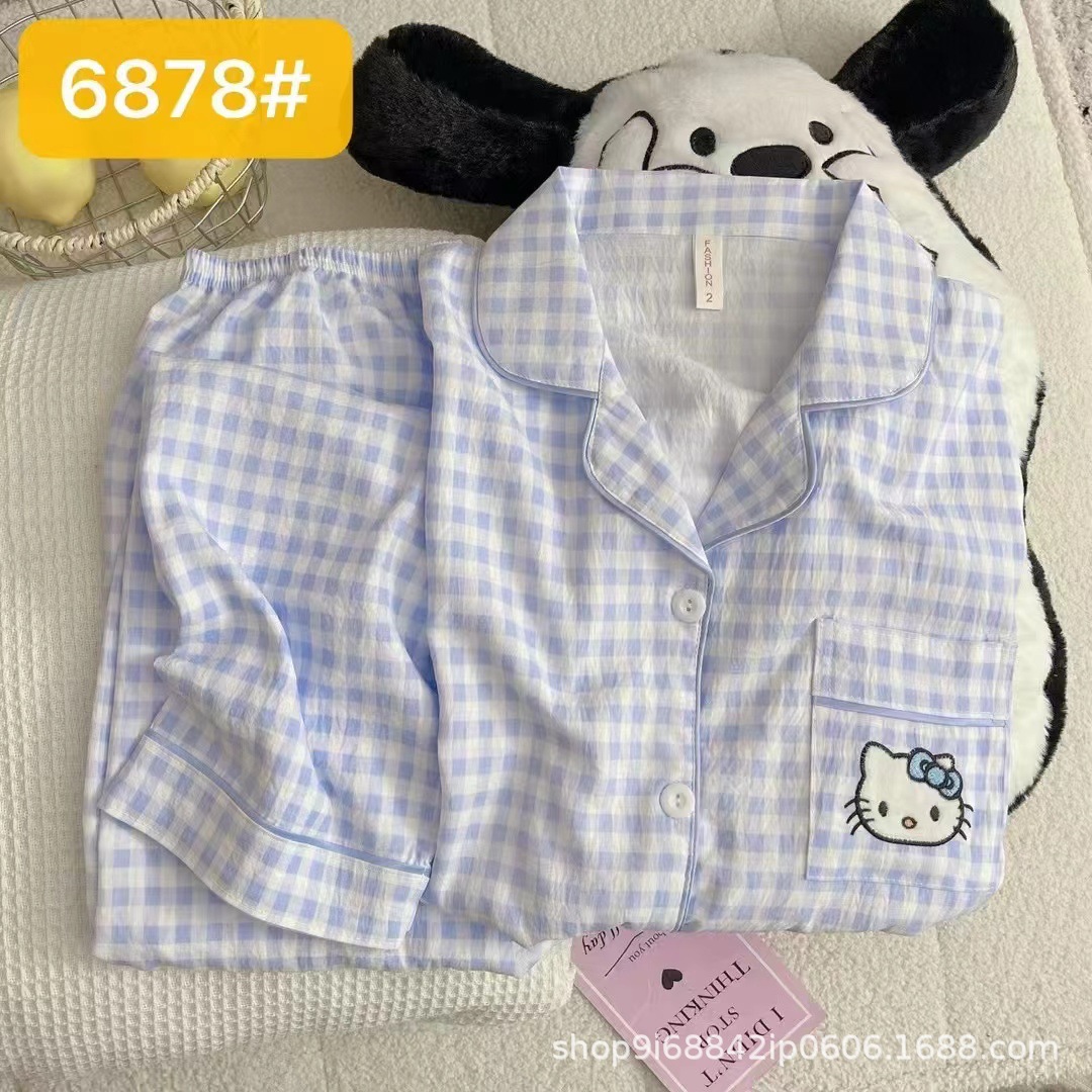 丸い点kt猫雲綿半袖2点セットパジャマ女性モデル夏新型韓国版2025カーディガン住宅服