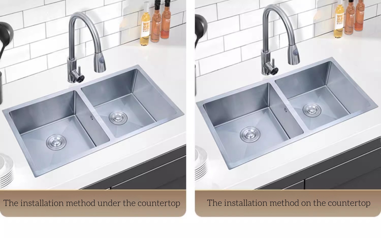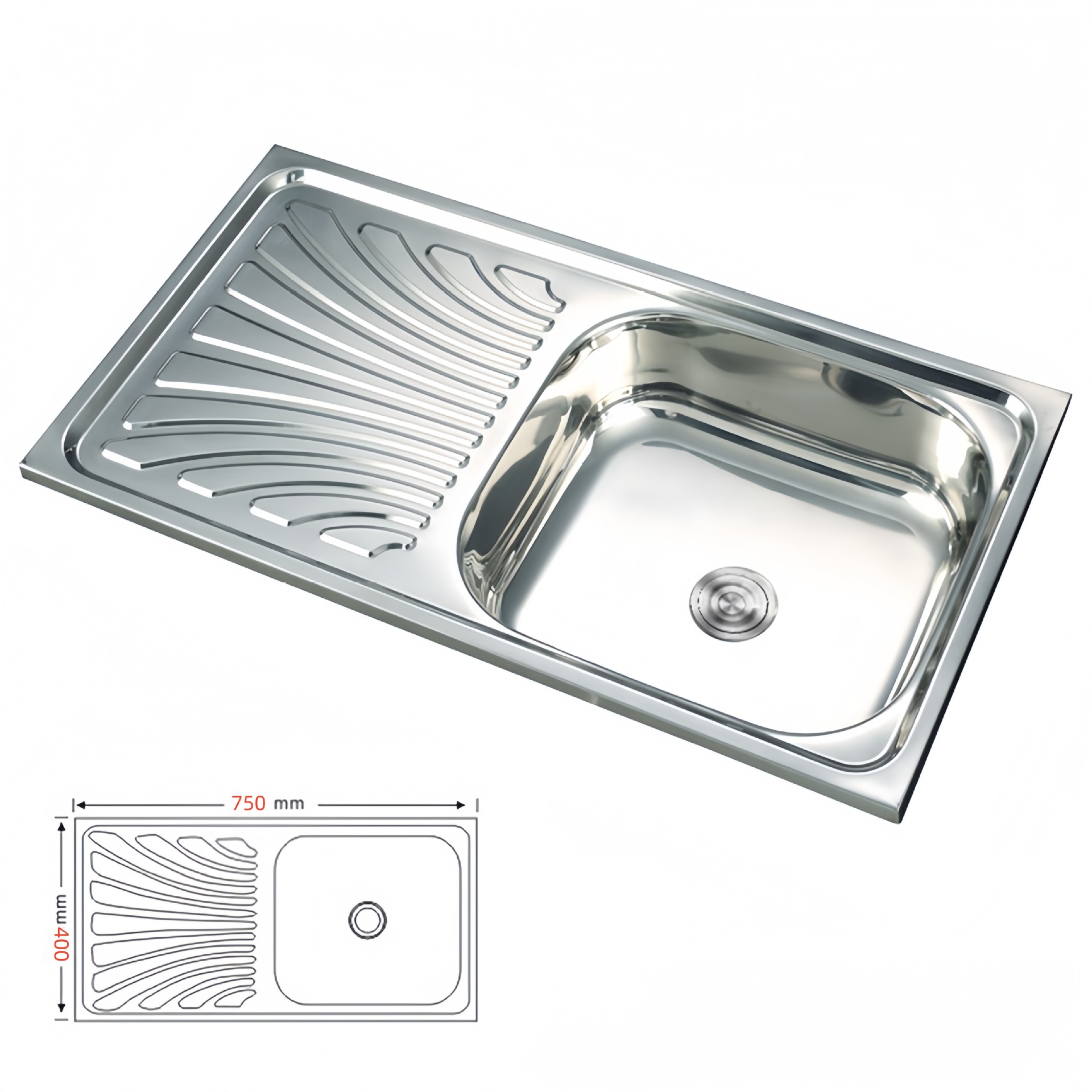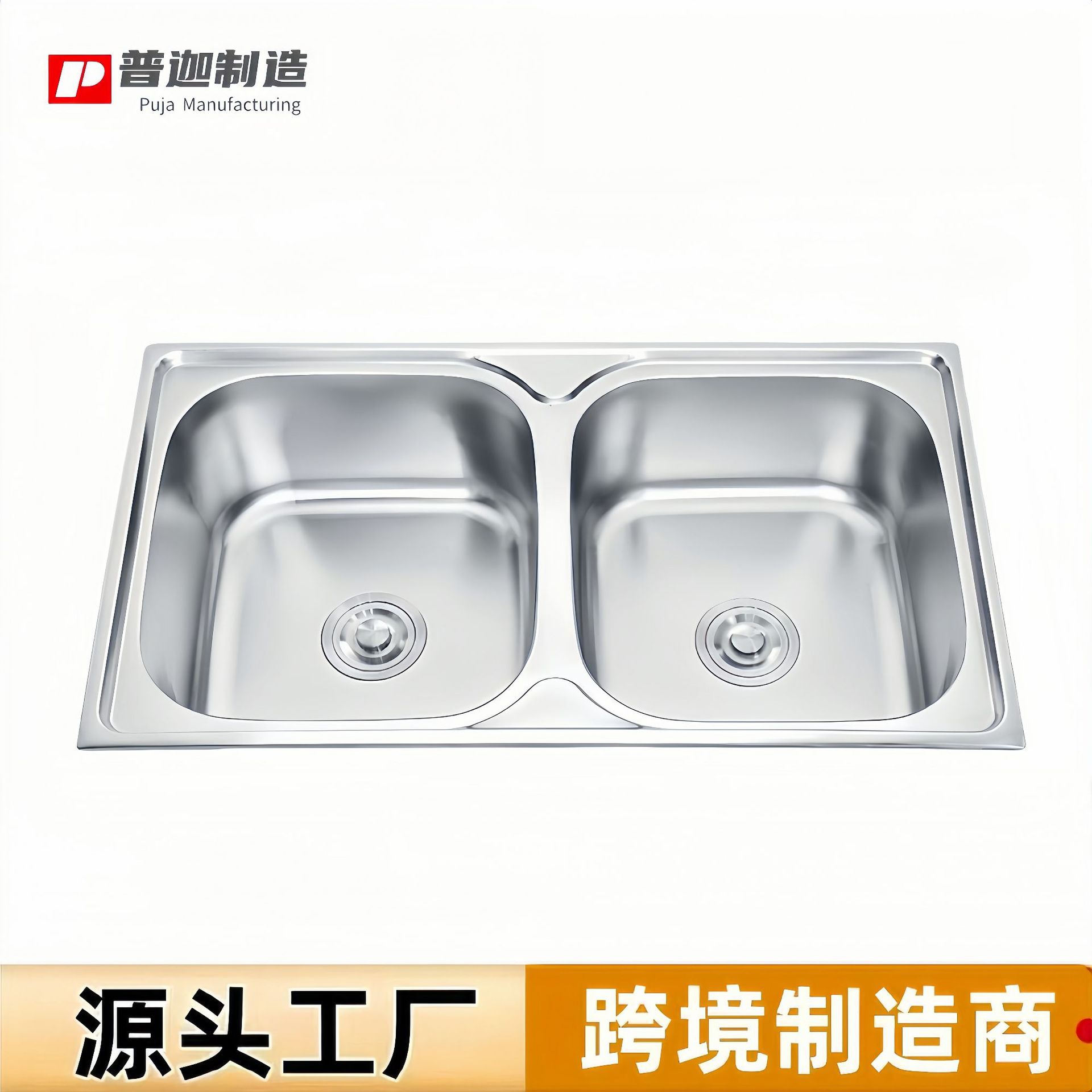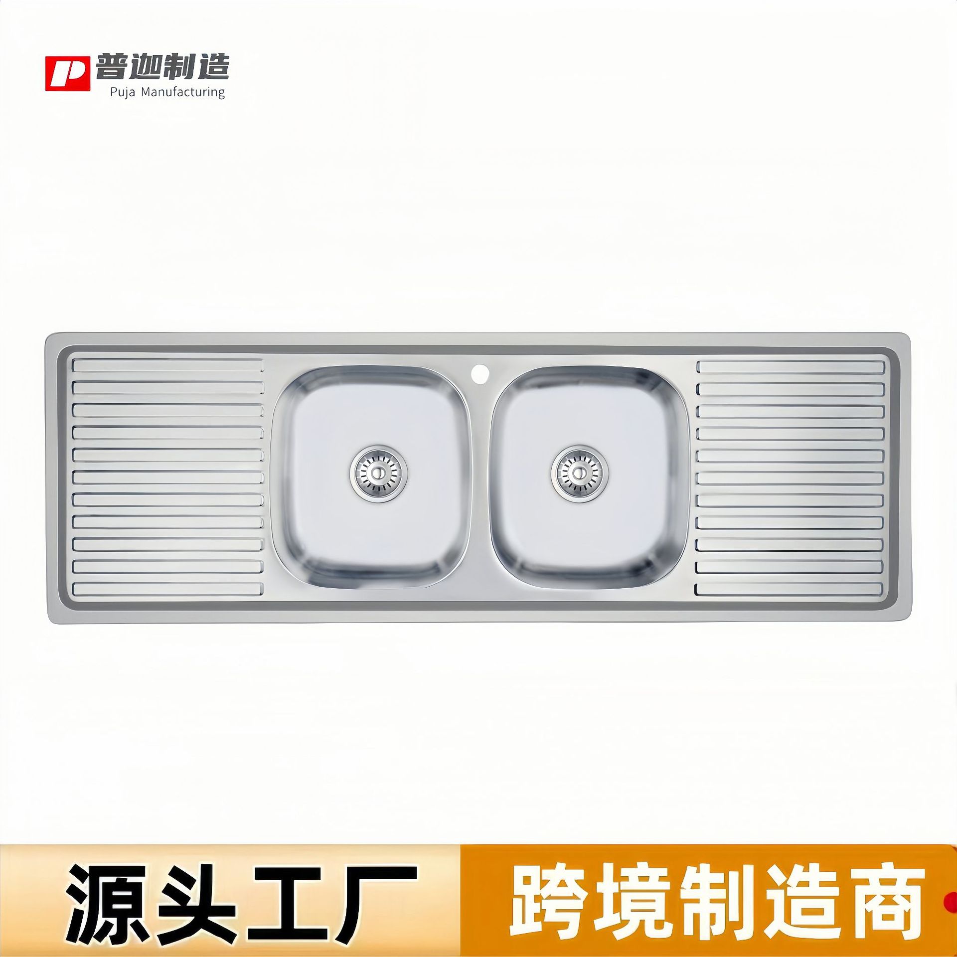 シンク工場直販、東南アジア向け輸出、二槽式ステンレス製キッチンシンク(板付き)、食器洗いシンク(板付き)