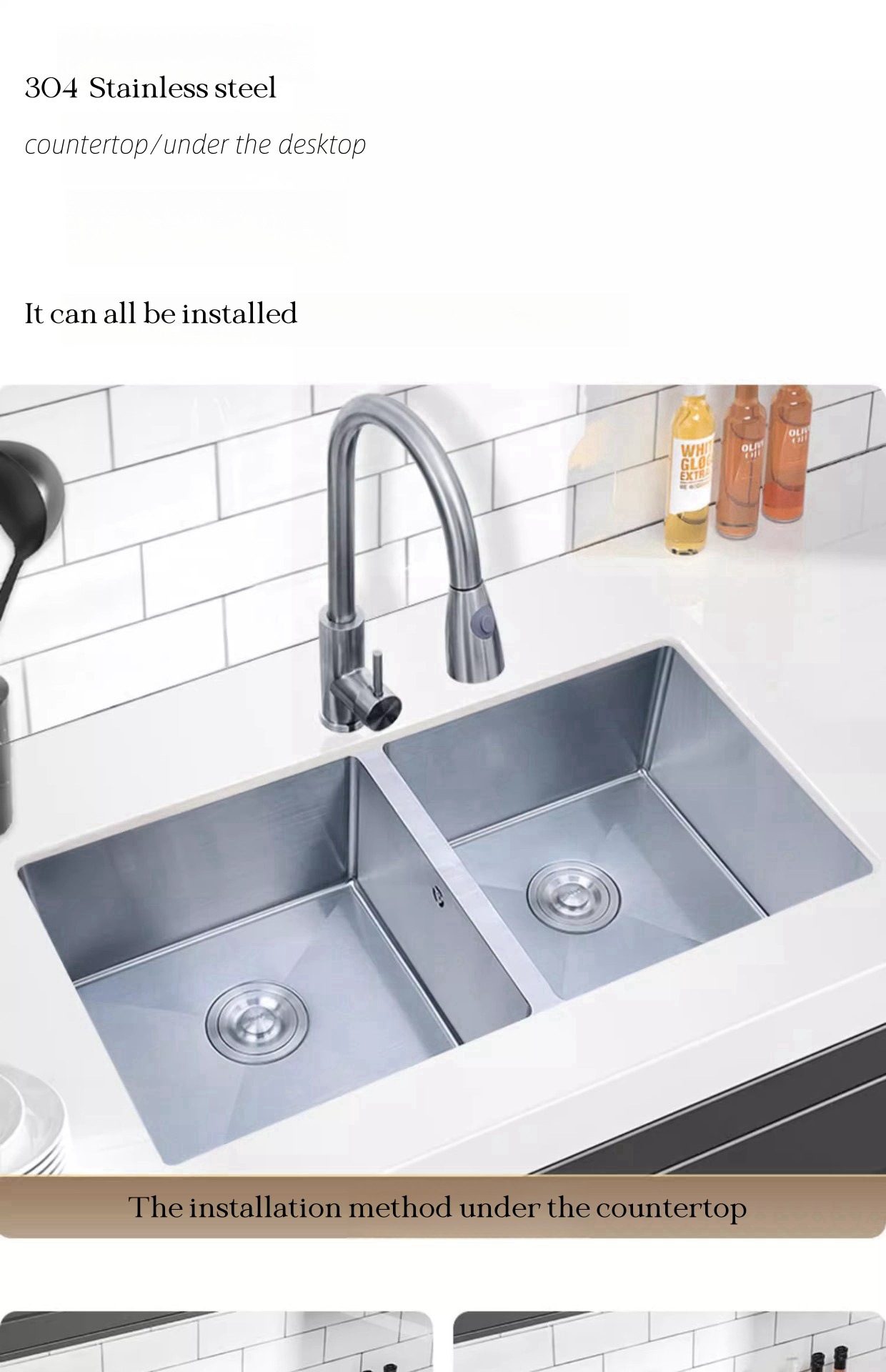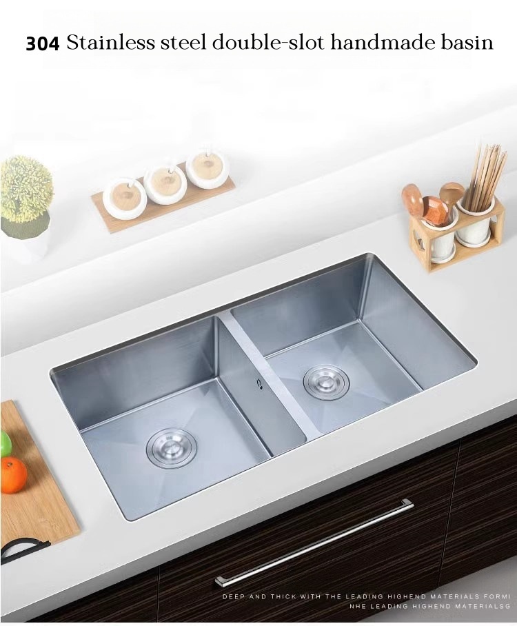 304 ステンレス鋼のシンクアンダーカウンター洗面器ダブルスロット家庭用キッチンシンクのような大きな洗面器クロスボーダー用ダブル洗面器