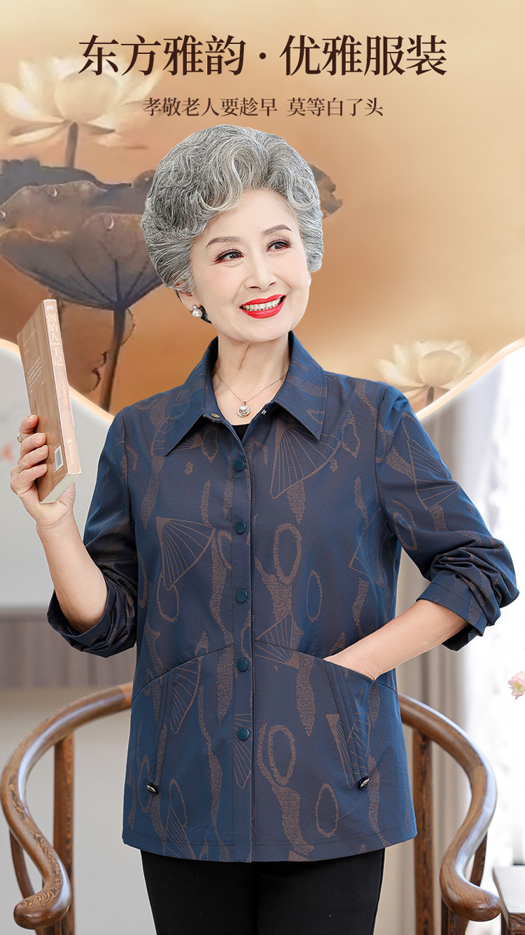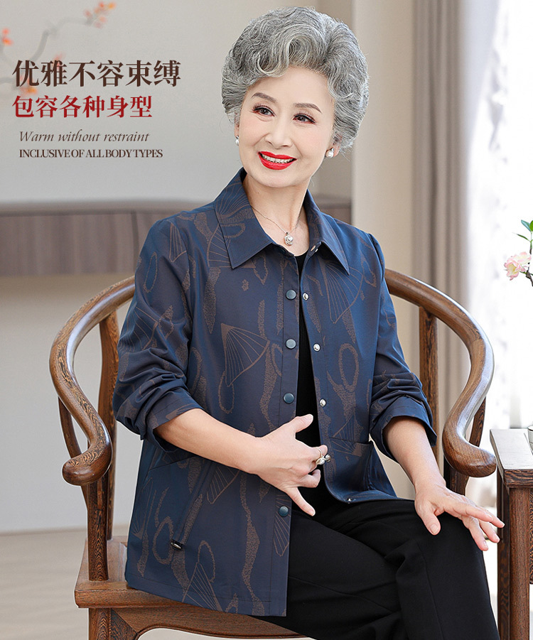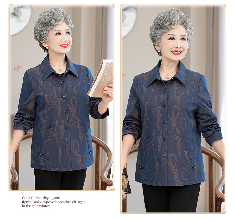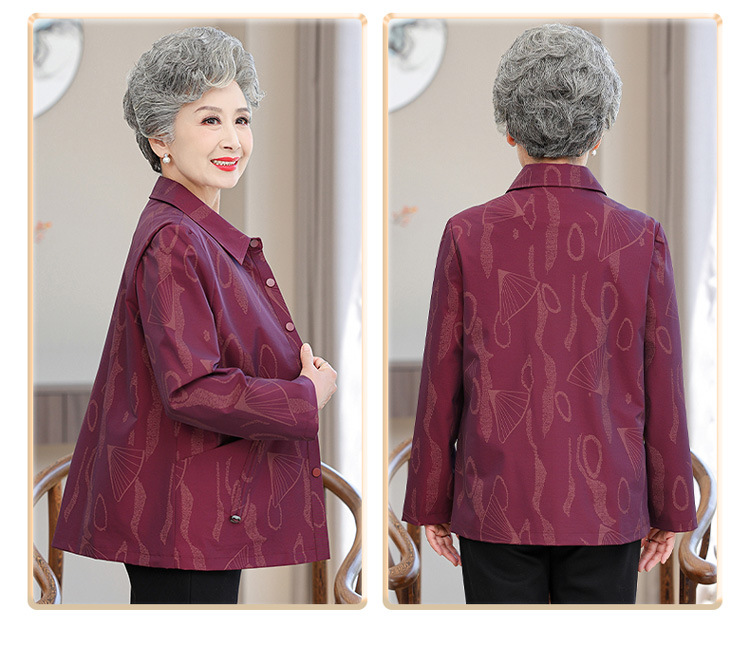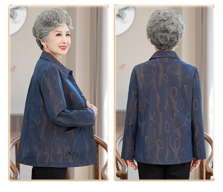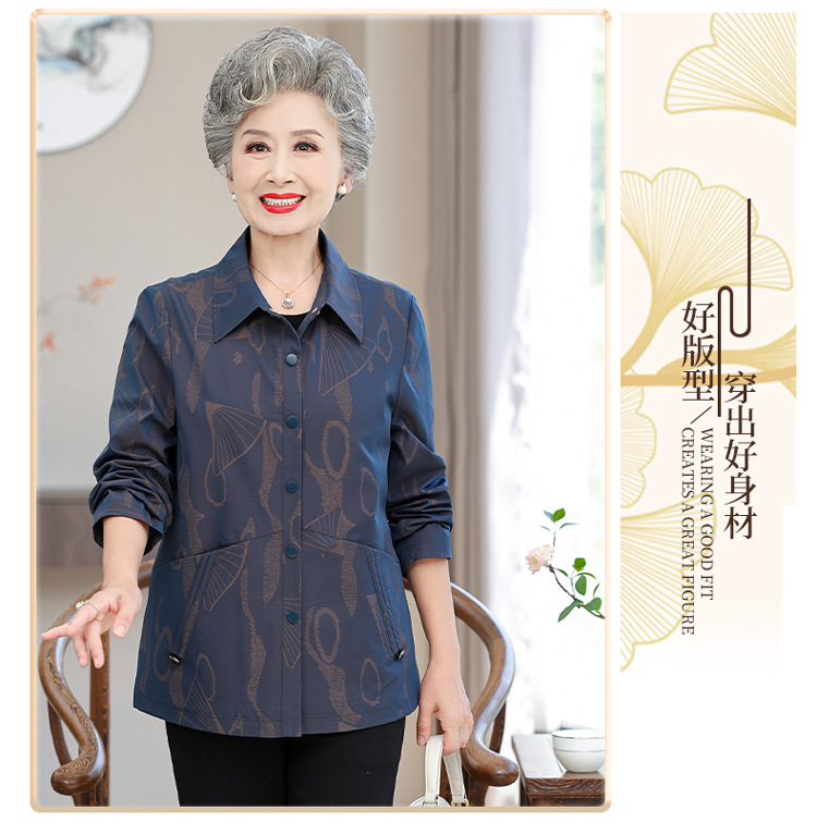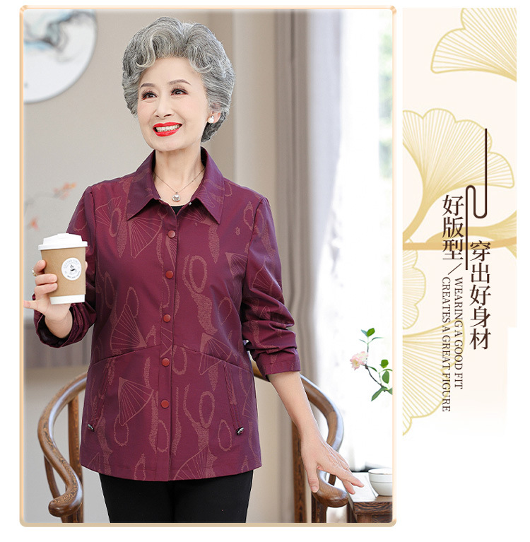 おばあさんの秋の服のジャケットの中で高齢者の婦人服のお母さんのシャツの襟のコートのおばあさんの春秋のレジャー服