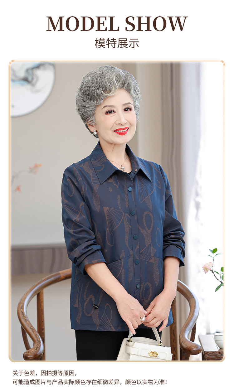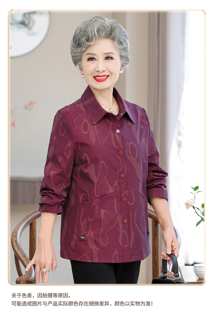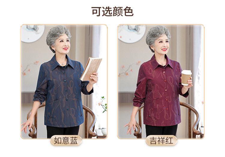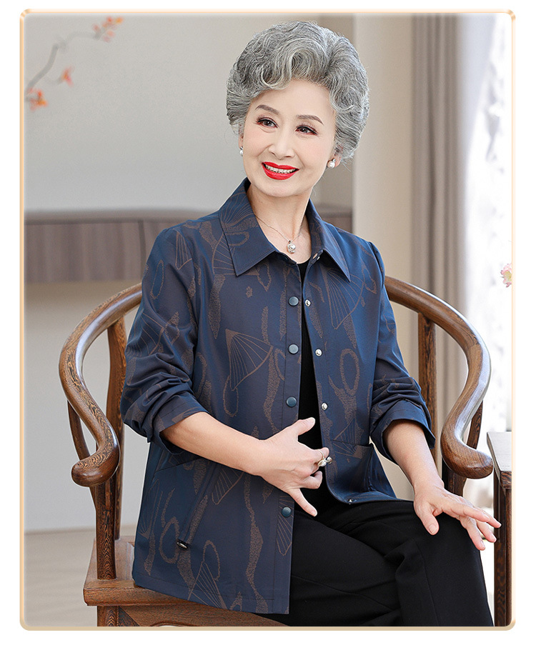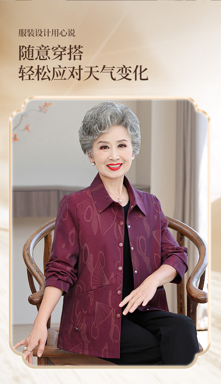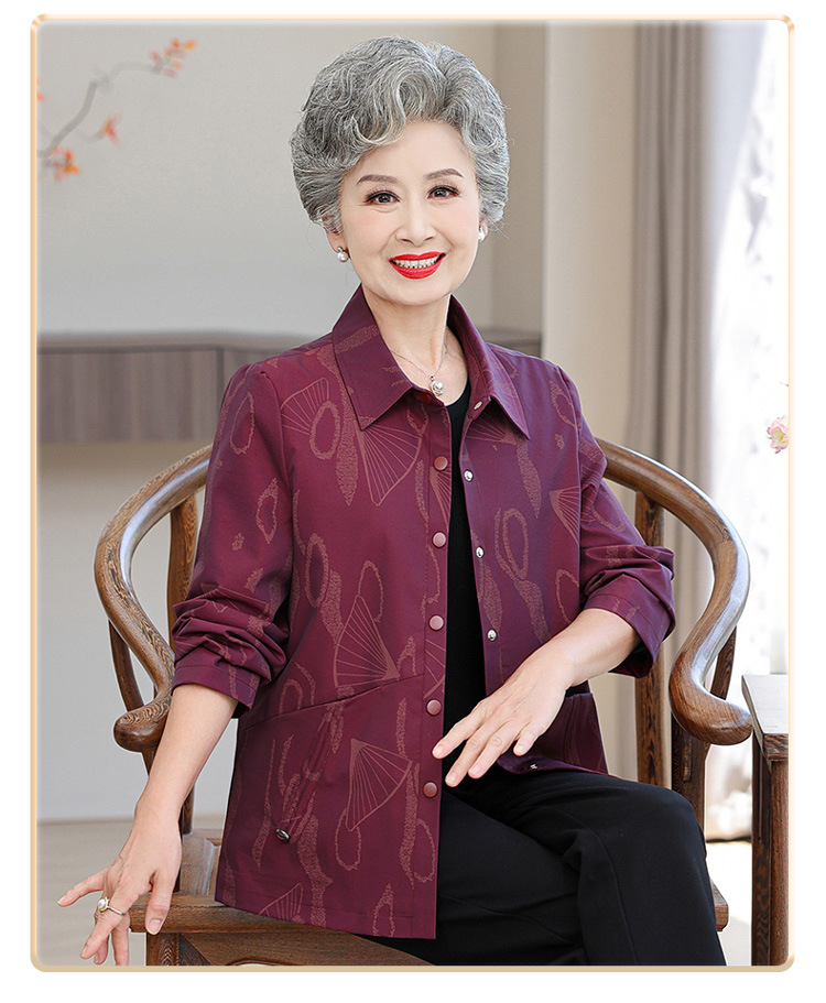 おばあさんの秋の服のジャケットの中で高齢者の婦人服のお母さんのシャツの襟のコートのおばあさんの春秋のレジャー服