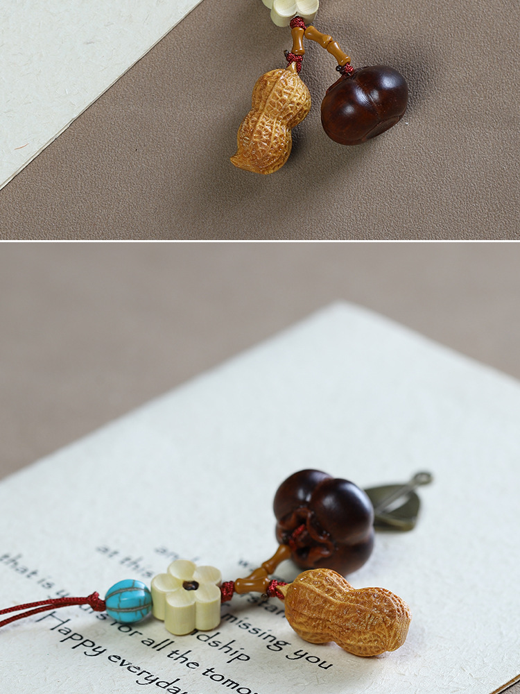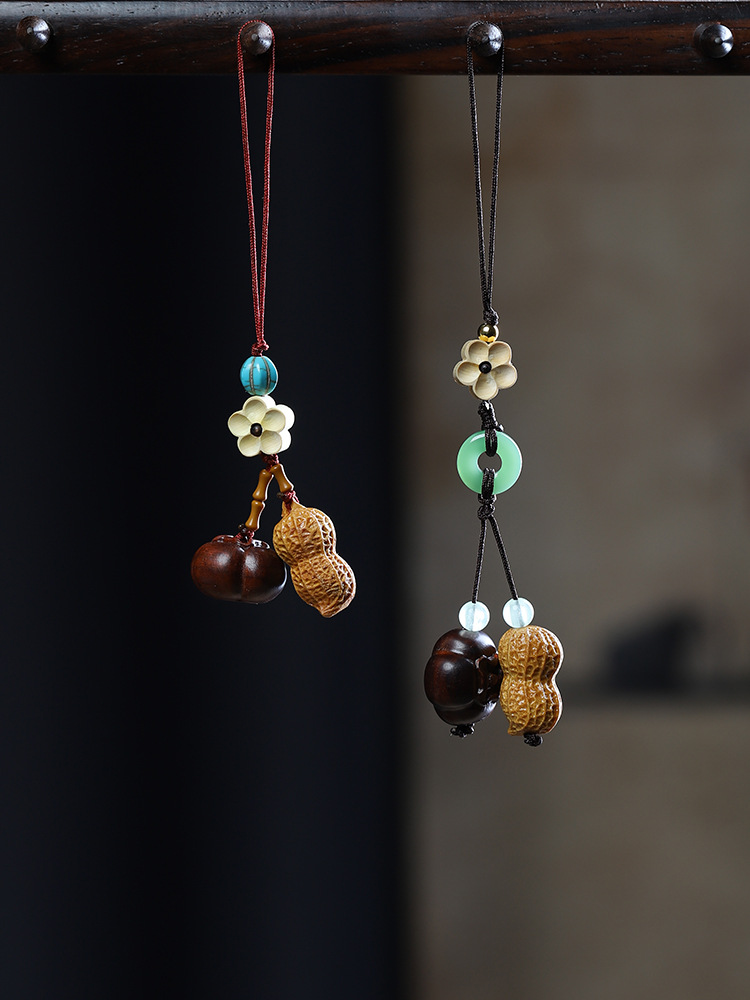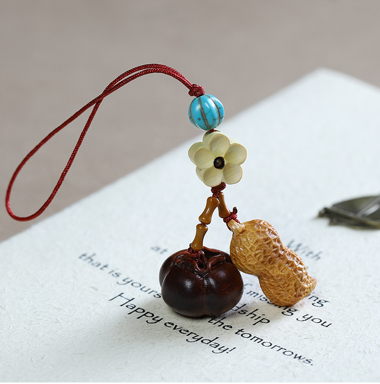 いいことピーナッツ檀木彫刻キーホルダー男女檀香木柿如意携帯ストラップペンダントペンダント