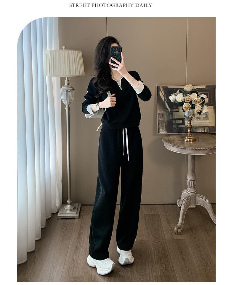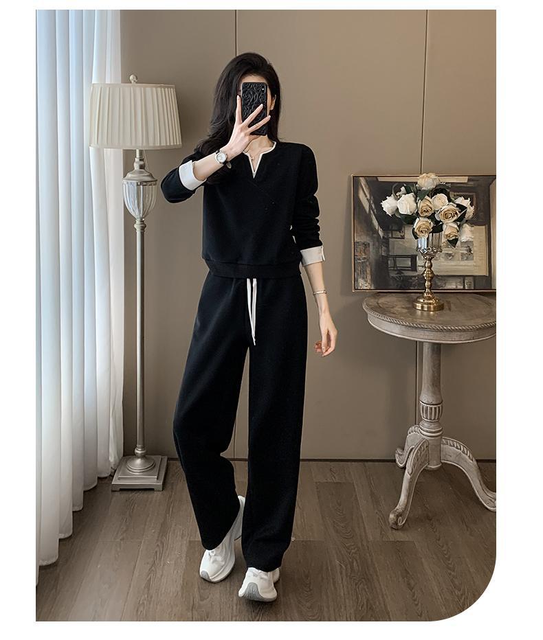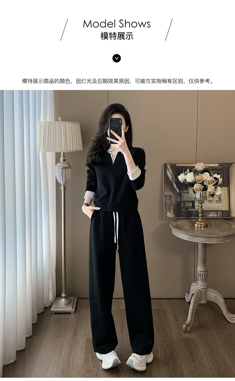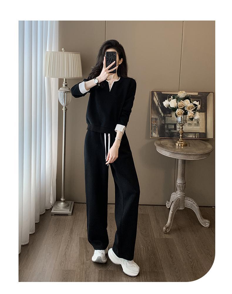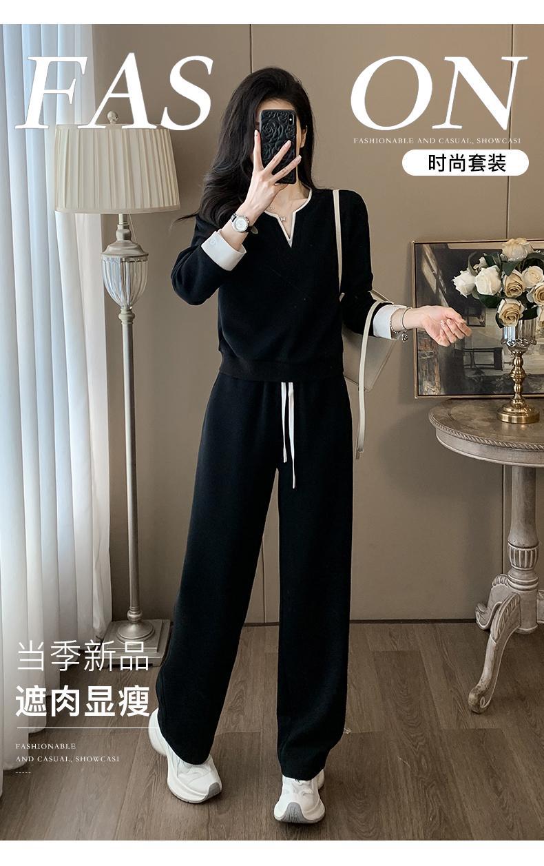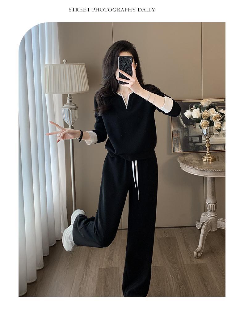 ファッションカジュアルvネック長袖着痩せ広レギンススポーツスーツ女性春秋高級感減着セット