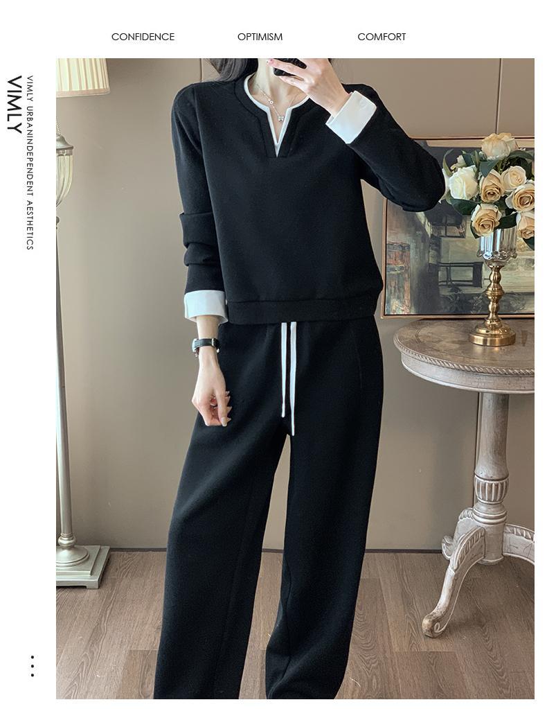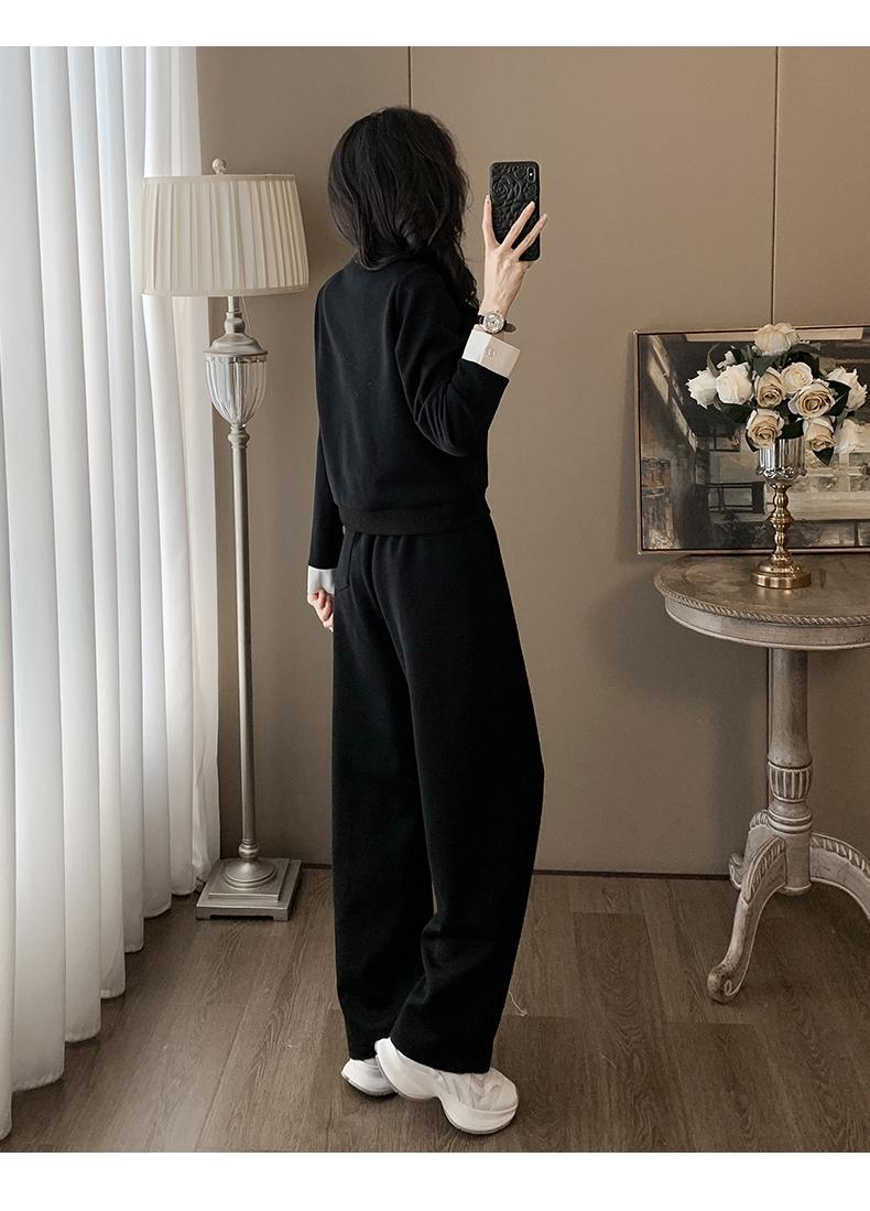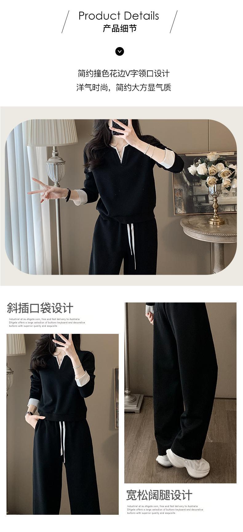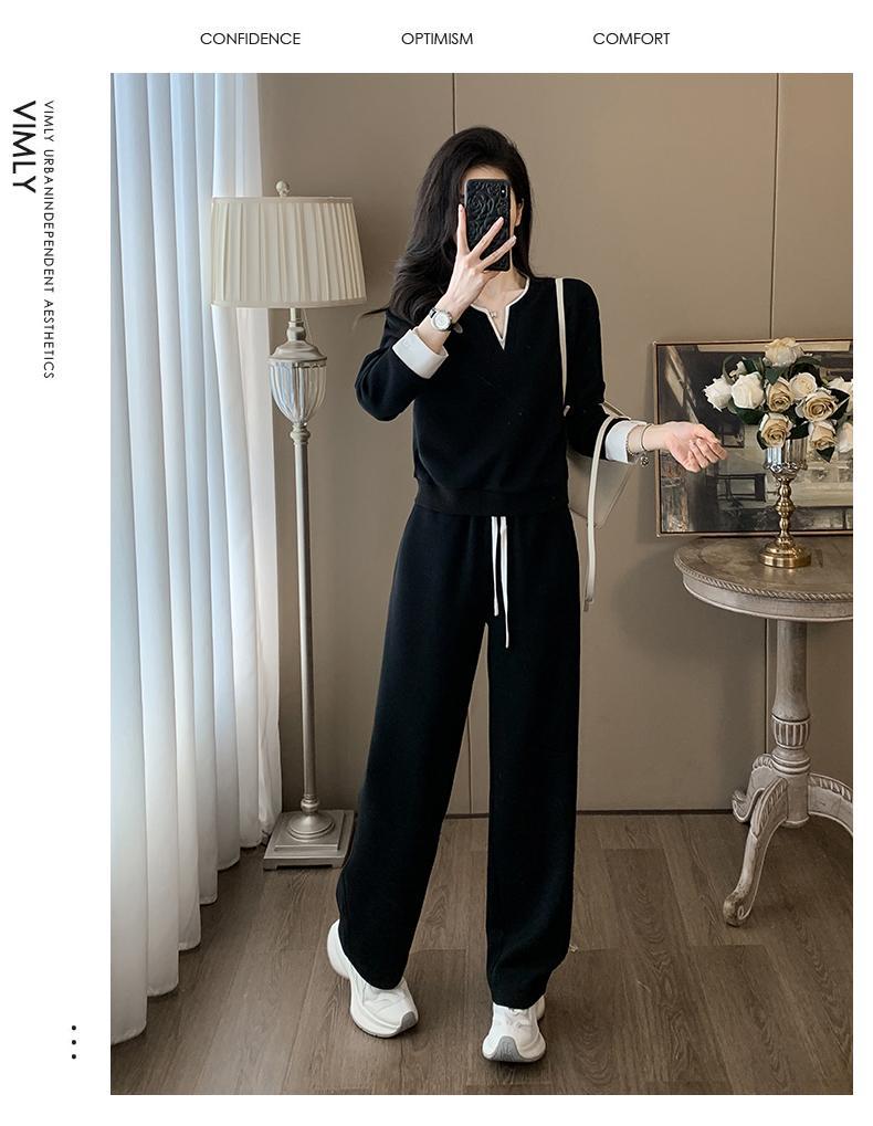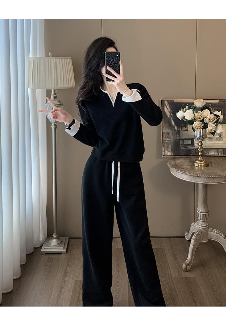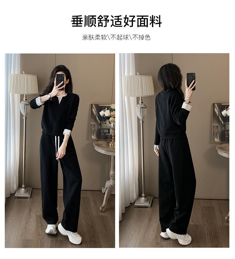 ファッションカジュアルvネック長袖着痩せ広レギンススポーツスーツ女性春秋高級感減着セット