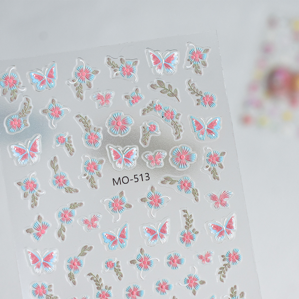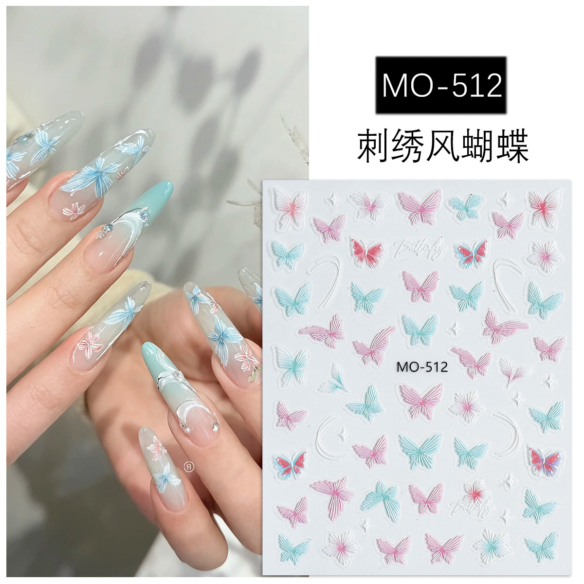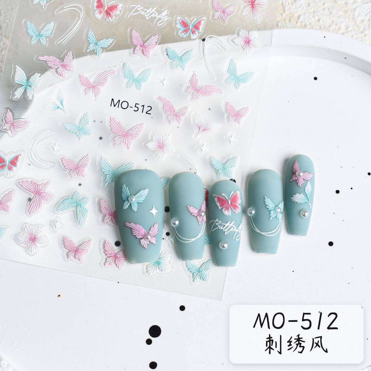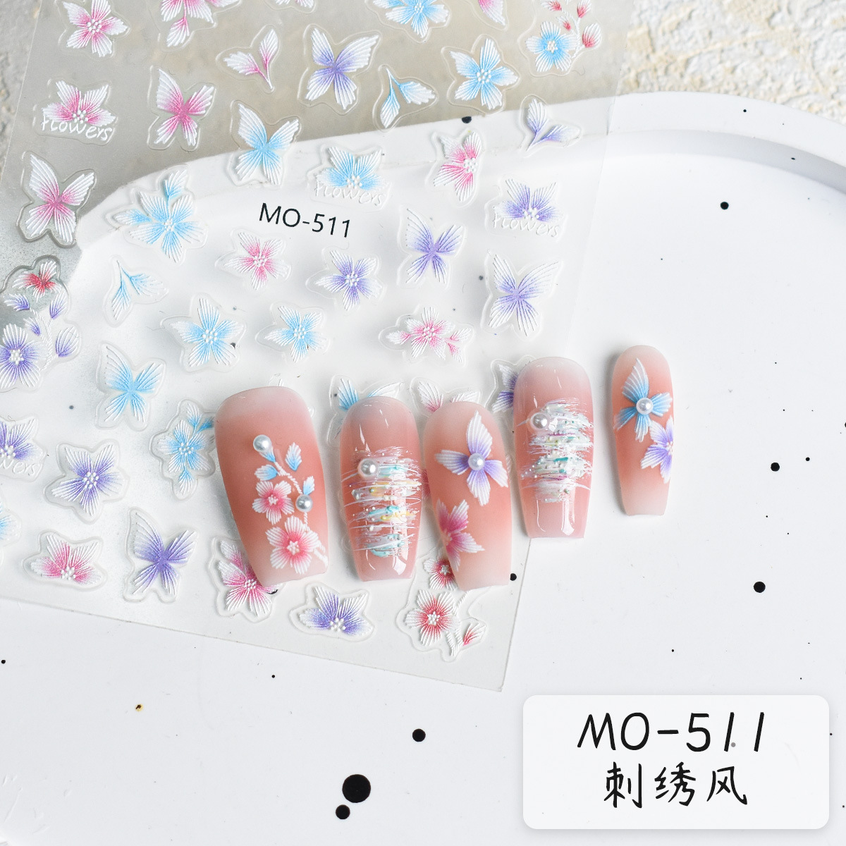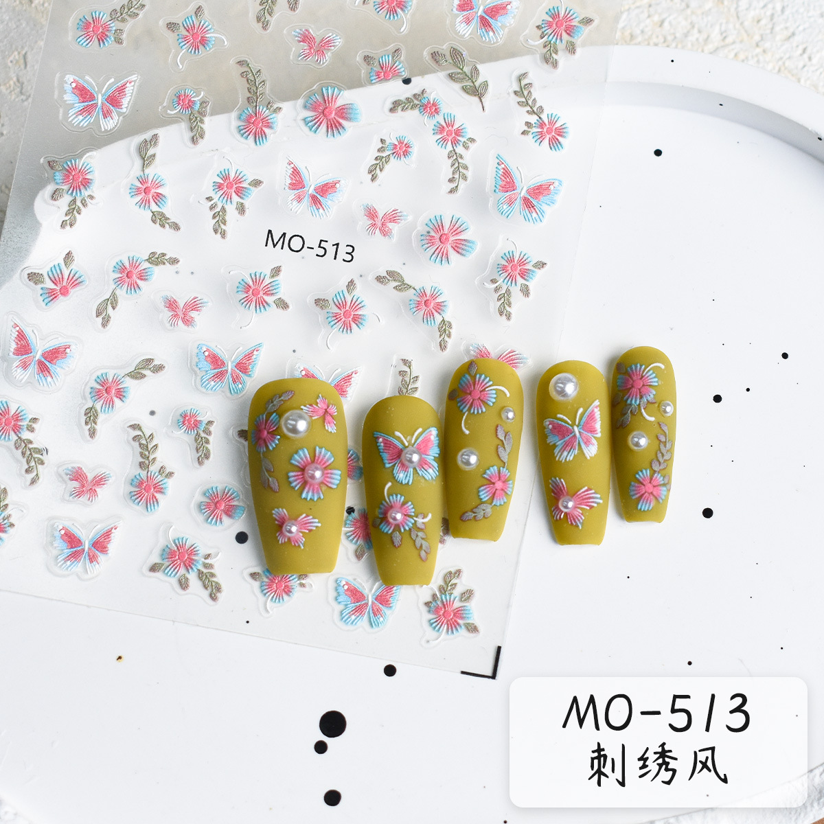 新品レリーフ刺繍花春の日刺繍蝶カラーレリーフ立体手描き花国风ピンクネイルシール