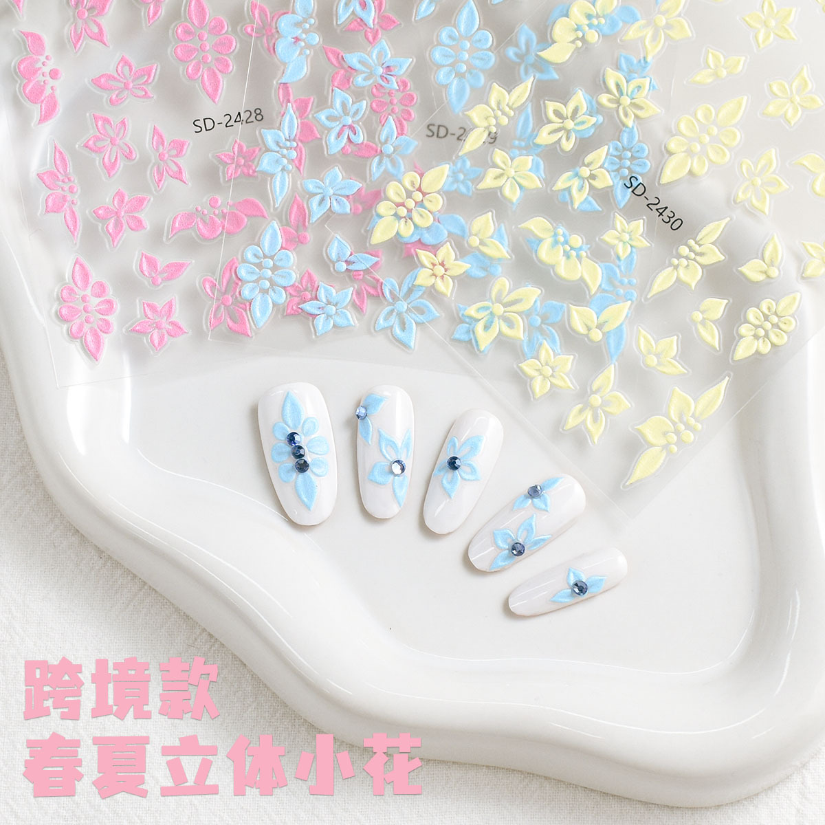新しい外国貿易グラデーション立体花ネイルアートステッカー多用途春と夏の黄色、ピンク、青の花ネイルアートステッカー