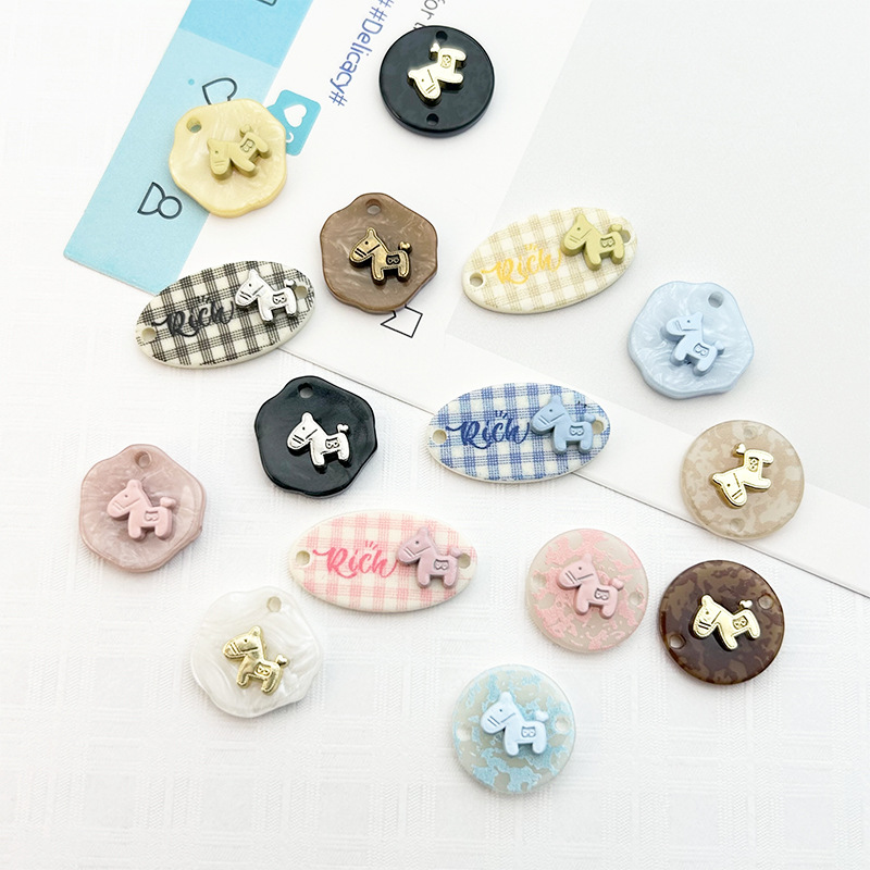 彩色格子纹树脂金属组合小马标牌椭圆异形圆形衣标毛衣开衫帽装饰