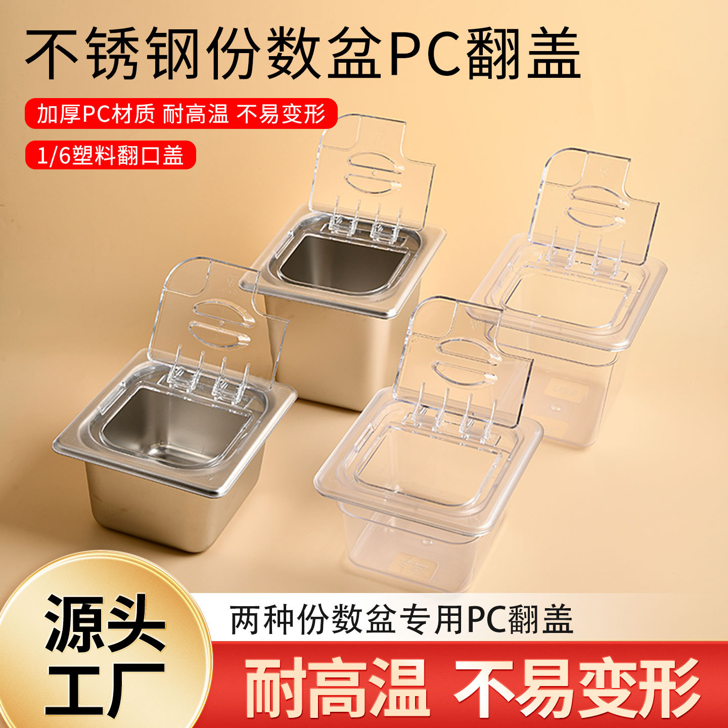 不锈钢份数盆奶茶店专用份数盒带盖1/6分数PC翻口盖子方形果酱盒