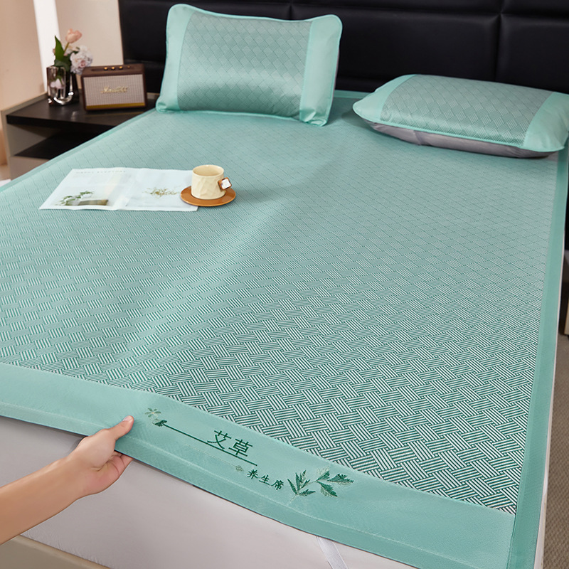 メーカー卸売り艾草藤席ベッド用品夏家庭用氷糸凉席三点セットシングル二人寮畳