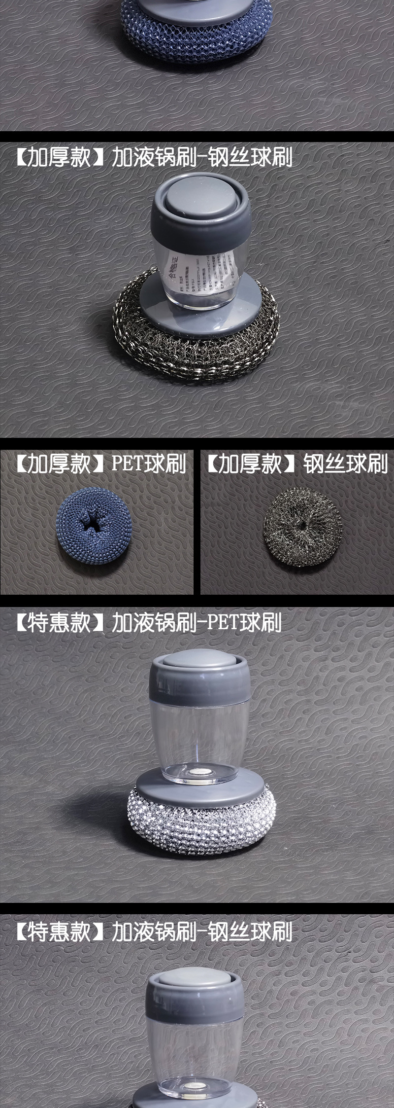 鍋ブラシ、効率的なプッシュ式自動液体添加鍋洗いブラシ、キッチン家庭用コンロ掃除ブラシ、スチールボール、工場直送