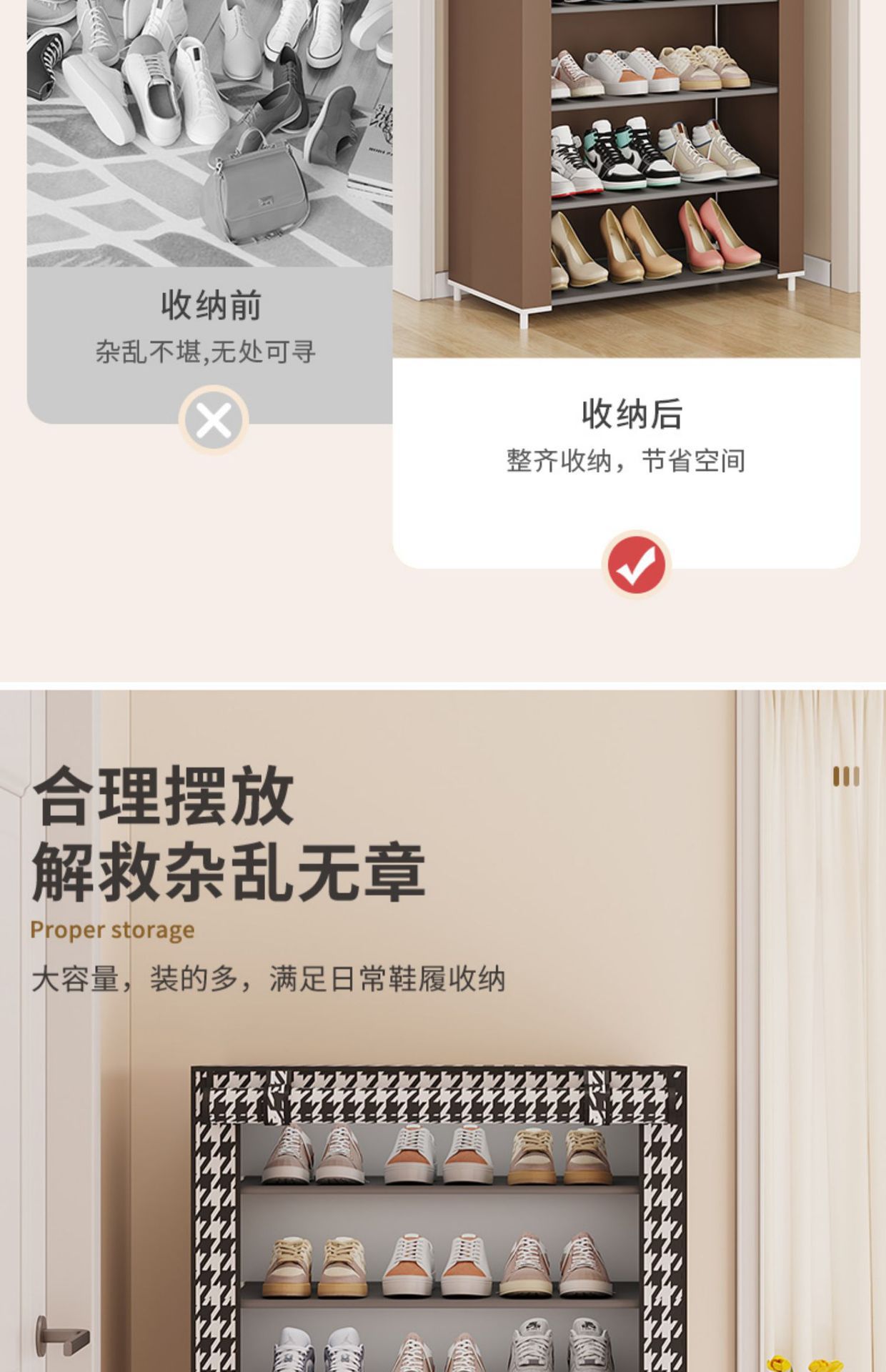 靴ラック シンプル 多層 玄関 靴箱 防塵 経済的 家庭用 小型 特価 収納ラック シンプル シェード カーテン
