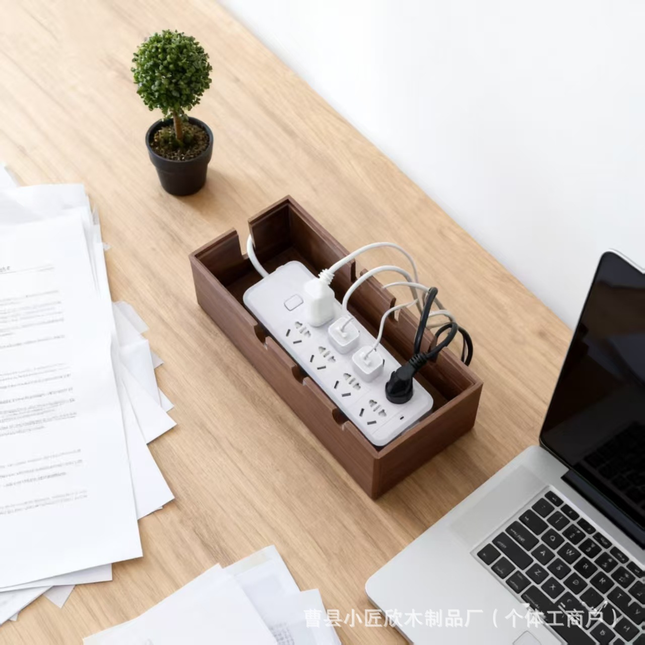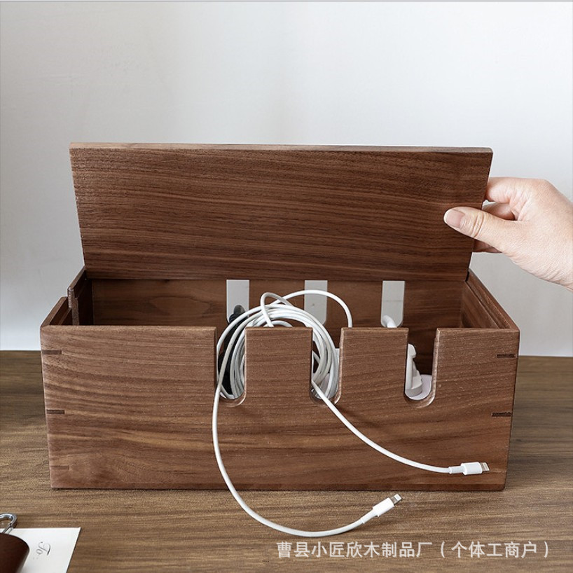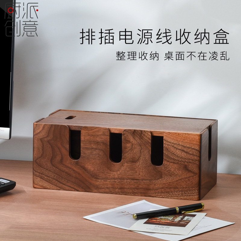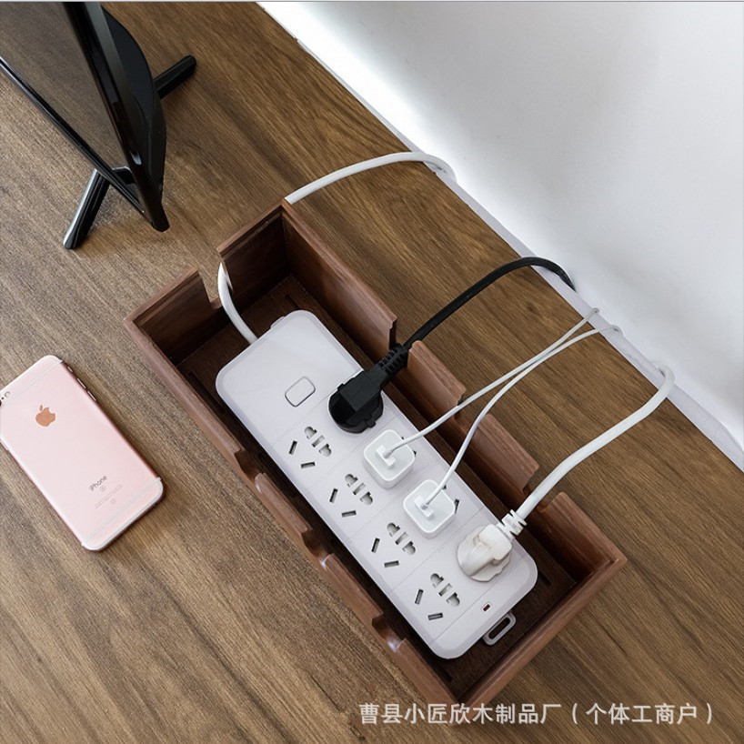 现货木质插线板收纳盒桌面电线整理收纳线盒插排插座电源线理线盒