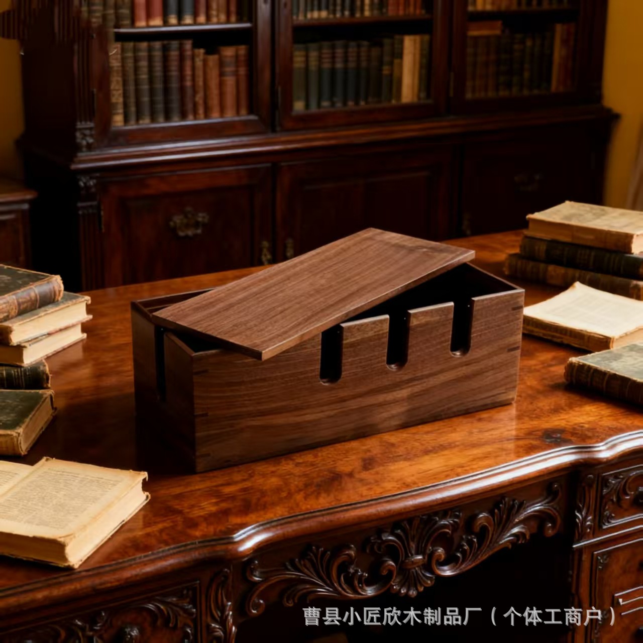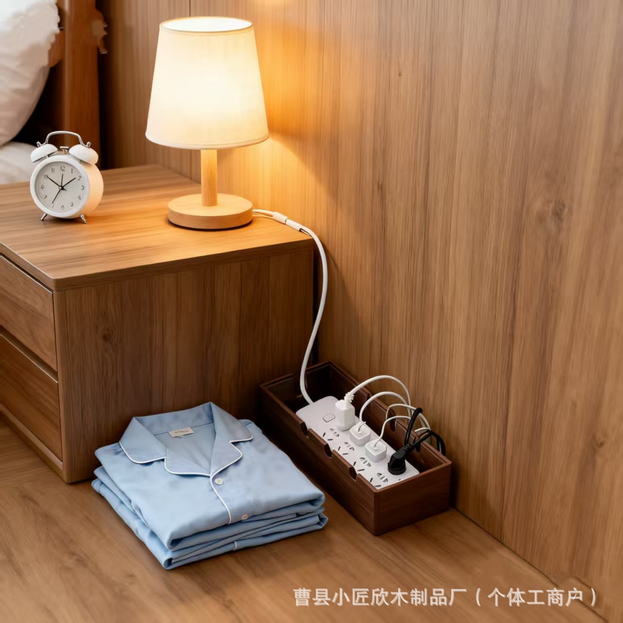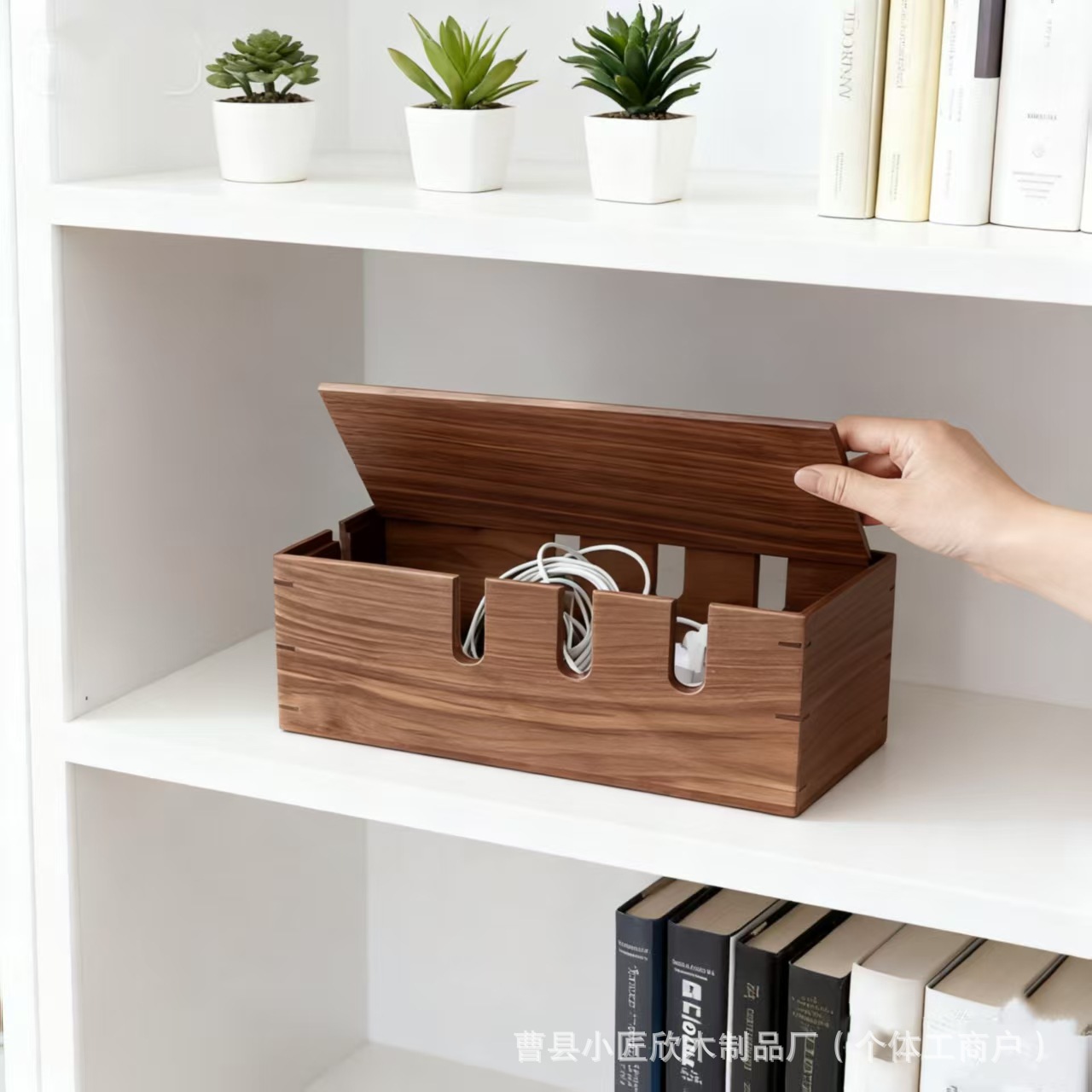 现货木质插线板收纳盒桌面电线整理收纳线盒插排插座电源线理线盒