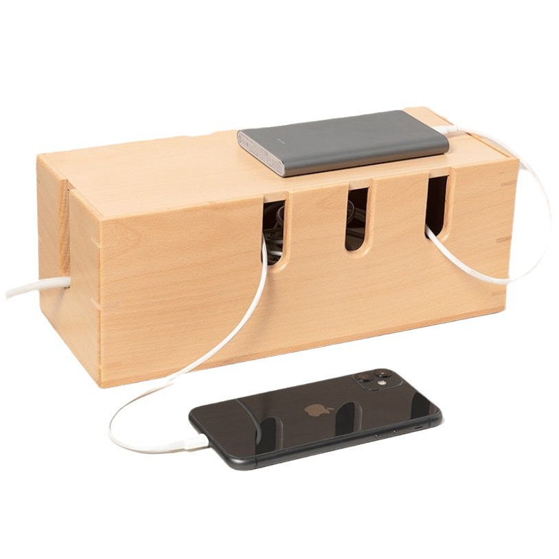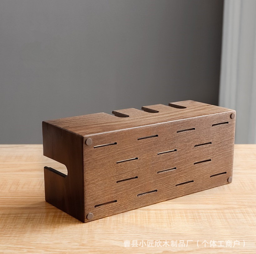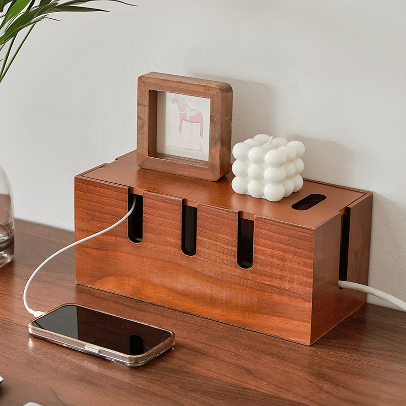無垢材ケーブル管理ボックスハブデスクトップデータケーブルストリップ電源コード収納ボックスルーター配置ラック