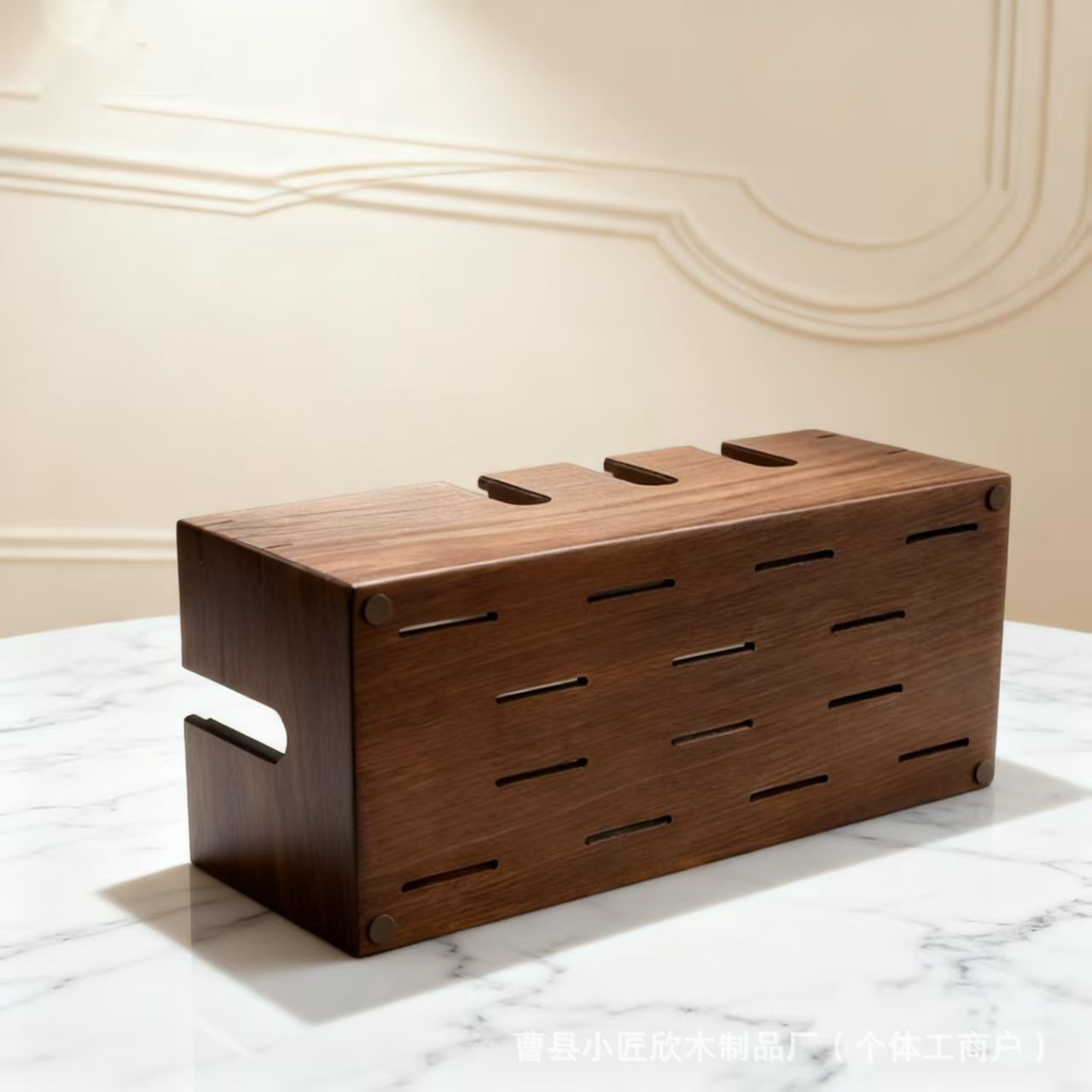 木制桌面电源线收纳盒插线板整理家用实木集线盒插排数据线收纳盒