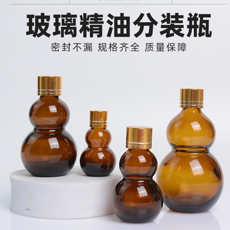 スポットブラウンダブルひょうたんローラーボールボトル 100 ミリリットルエッセンシャルオイル詰め替えボトル遮光ガラスエッセンスボトルサンプル詰め替え