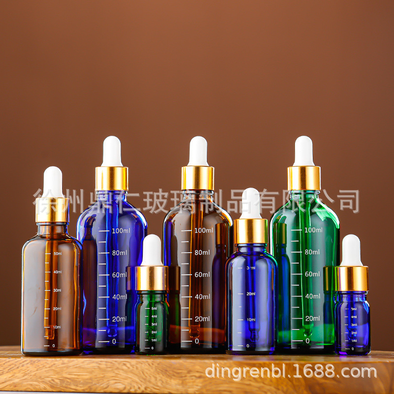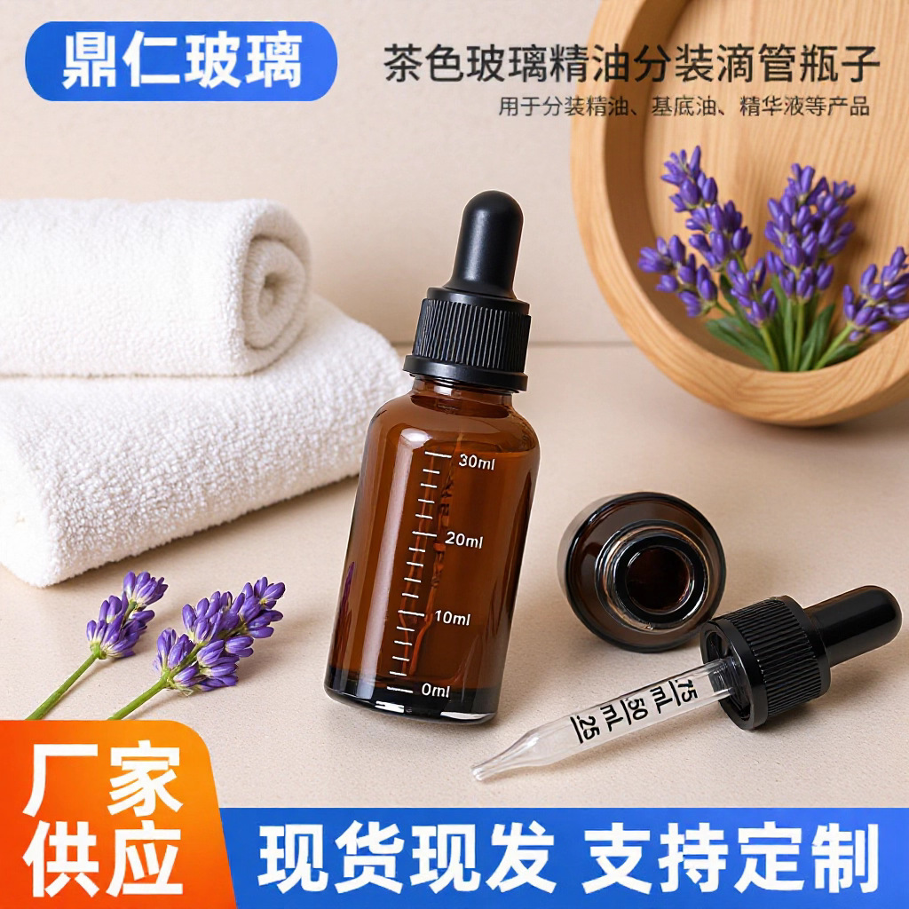 卸売スポット小容量ブラウン遮光エッセンシャルオイルボトル、目盛り付きスポイト、化粧品スポイト、エッセンシャルオイルボトル