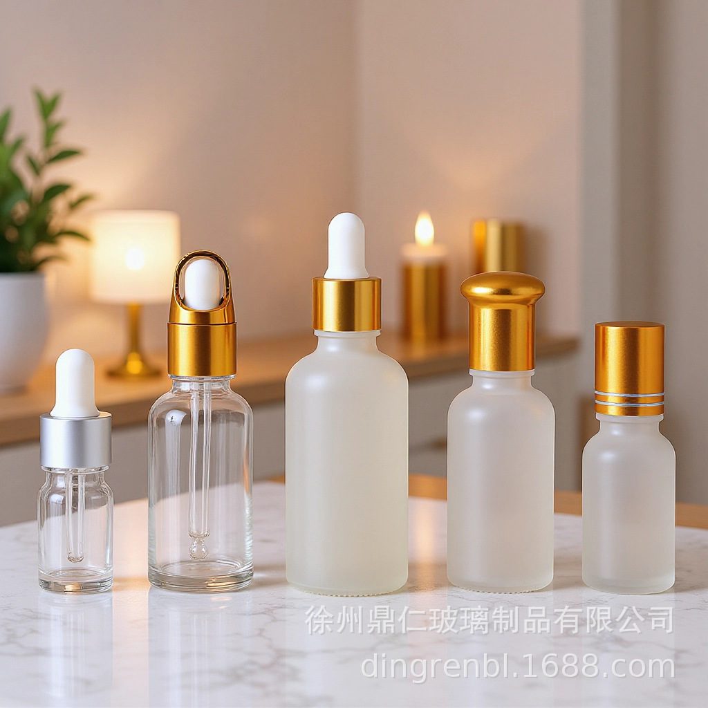 化粧品包装透明ガラスエッセンシャルオイルボトル空ボトルつや消しゴムヘッドスポイトボトル透明ポータブルサンプルボトル