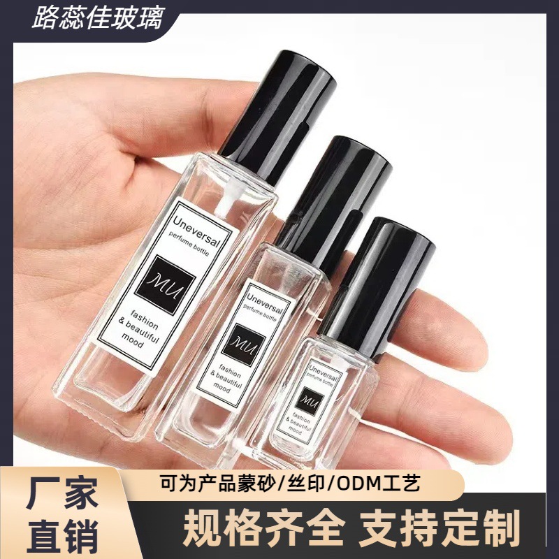 スポット卸売正方形の香水詰め替えガラスボトルポータブルスプレーボトル旅行ネジ口透明香水ボトル空ボトル