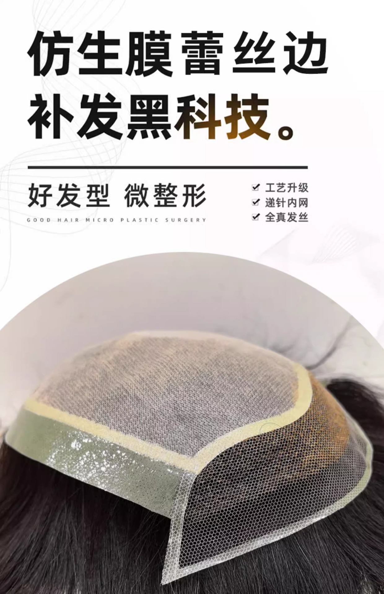 高級男性ステルス無痕真髪再発行片額レーススイスネットドリフトボタン手織り針再発行ブロック