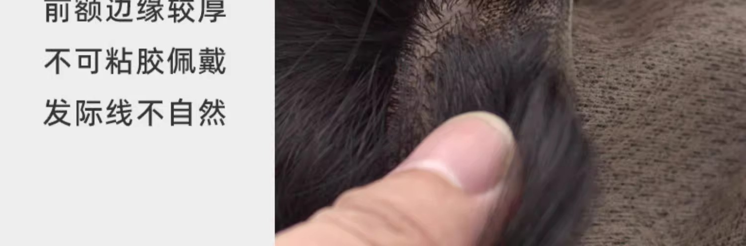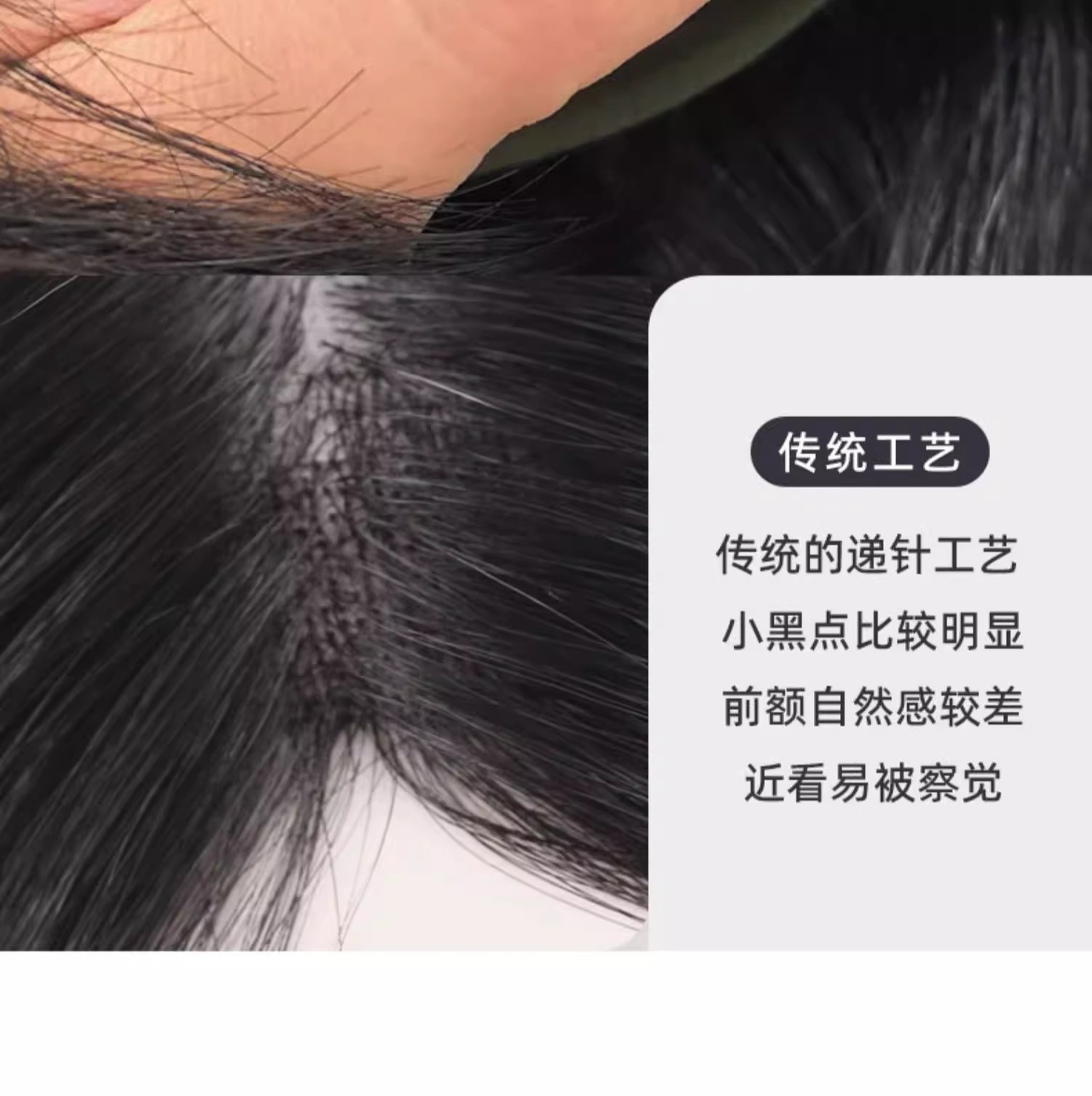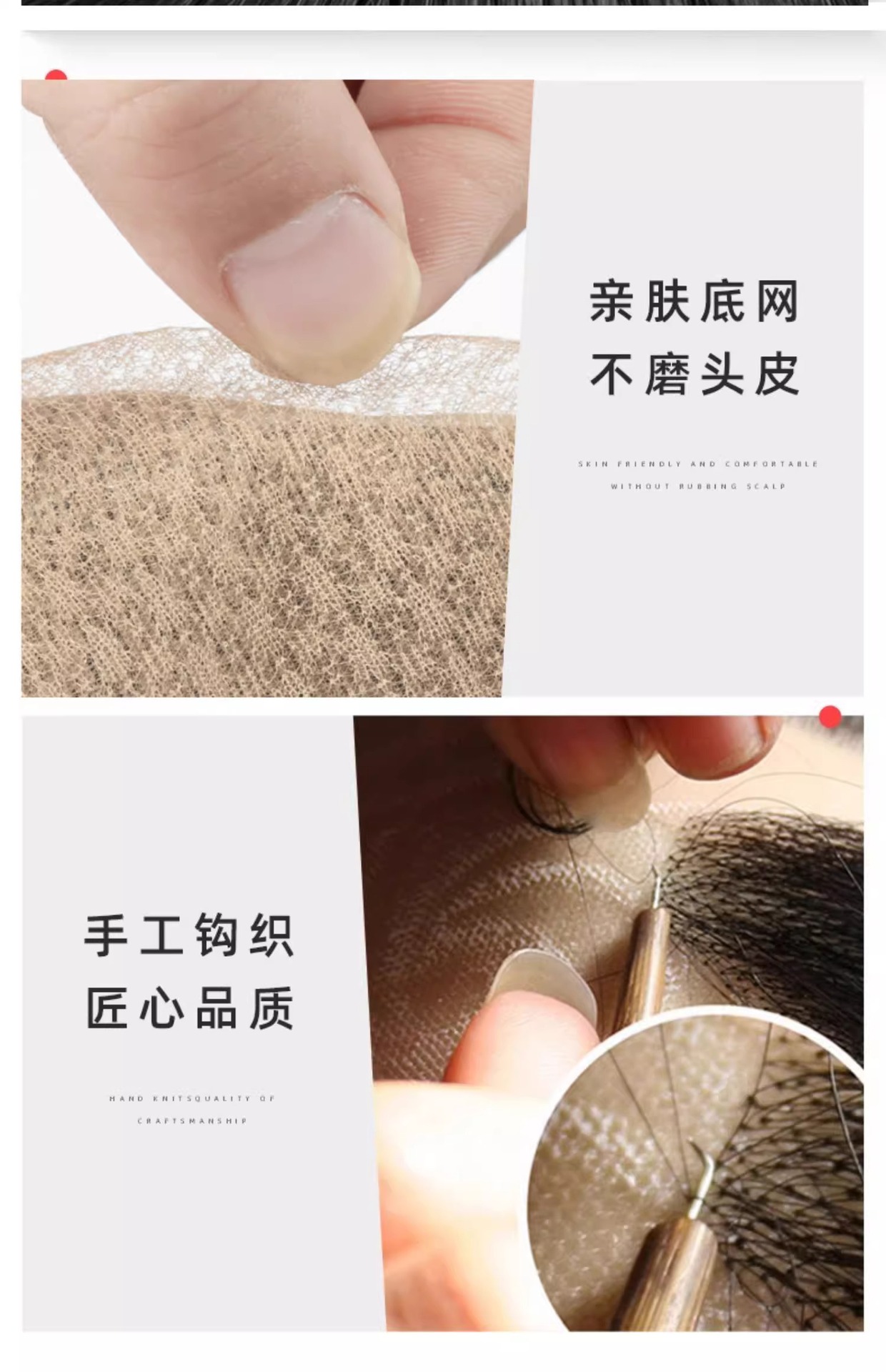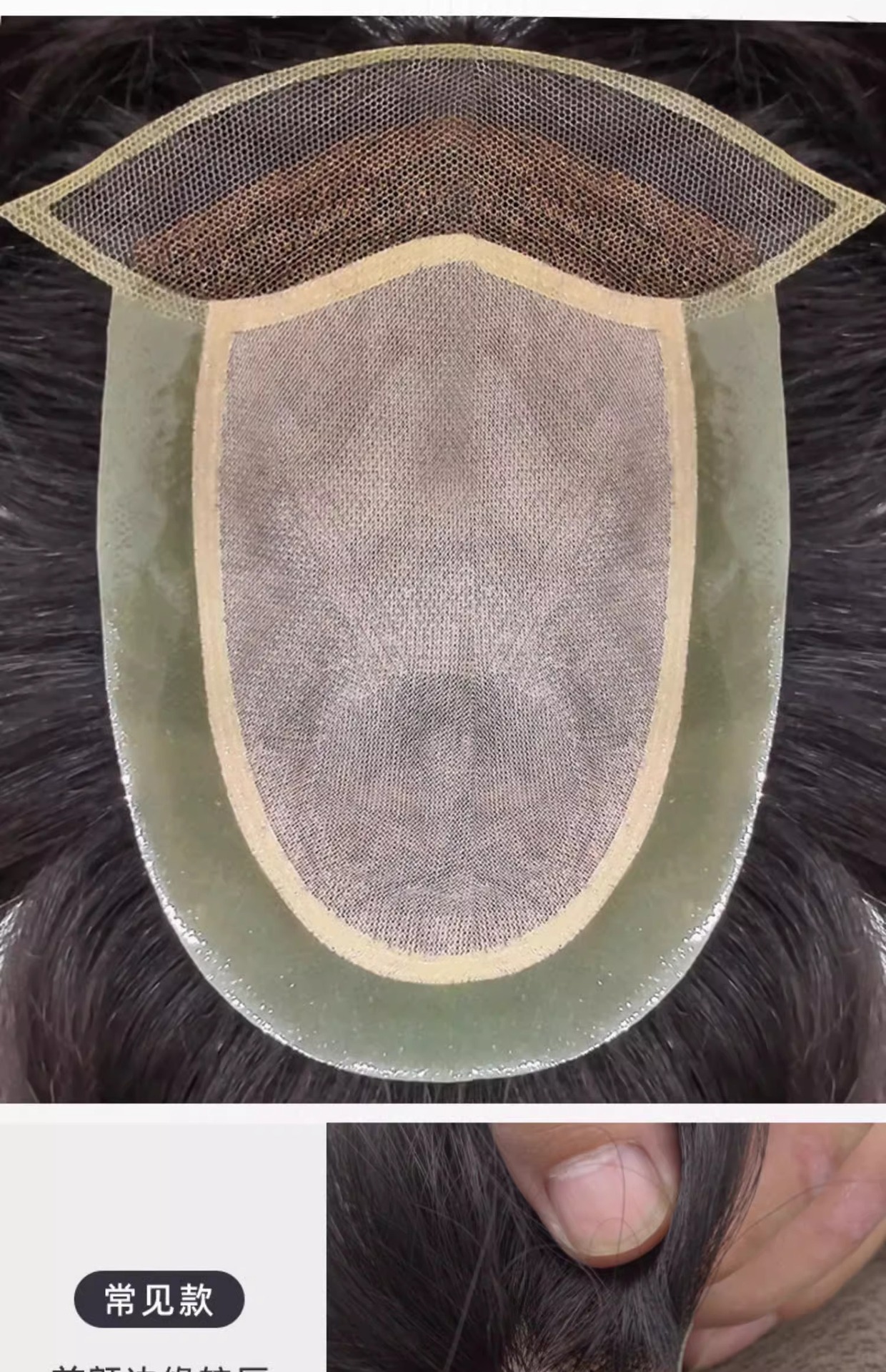 瑞士网双递针男士假发高端轻薄透气手织钩织前额蕾丝真人发补发块