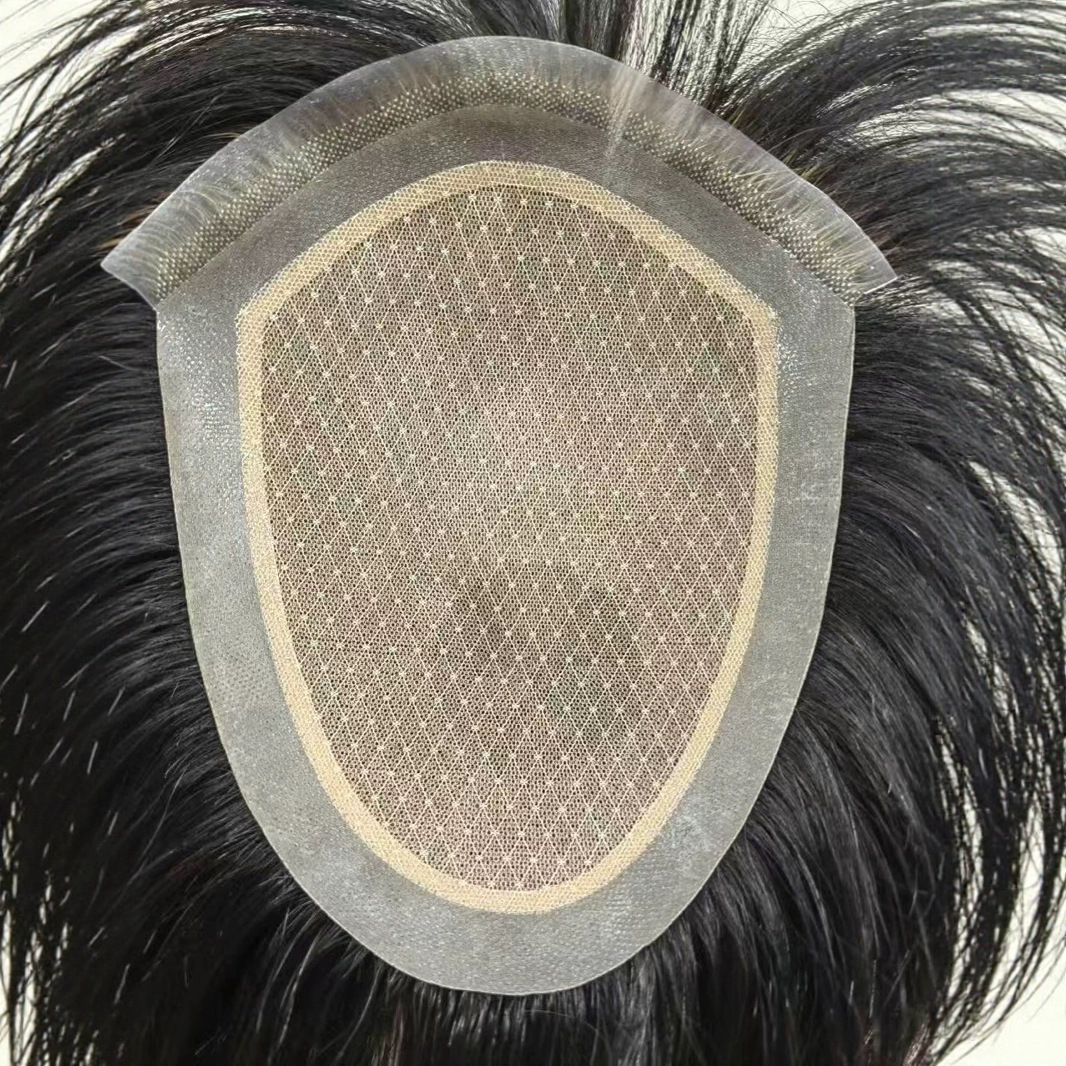ダブル針男性の高級かつらは薄くて通気性があります。