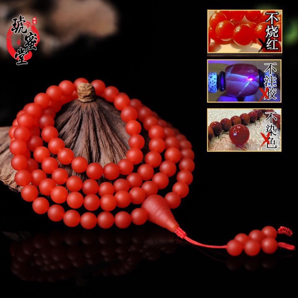 保山南紅メノウ手串天然満色肉と仏頭鎖108個の仏珠男女多輪数珠