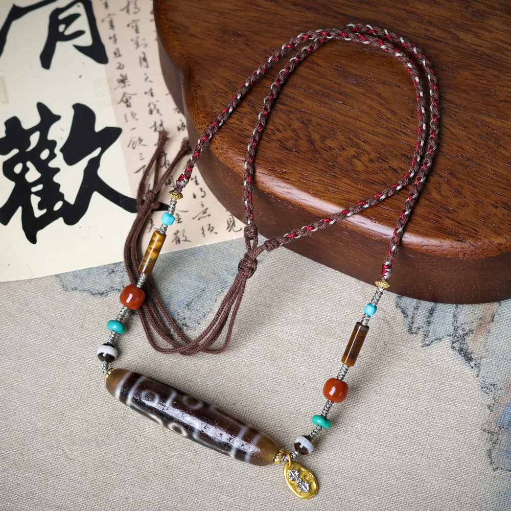 批发藏饰九眼天珠男女款复古百搭项链 文玩民族风毛衣链 一件代发