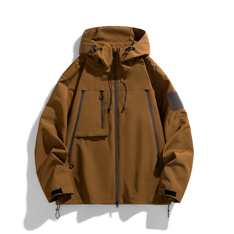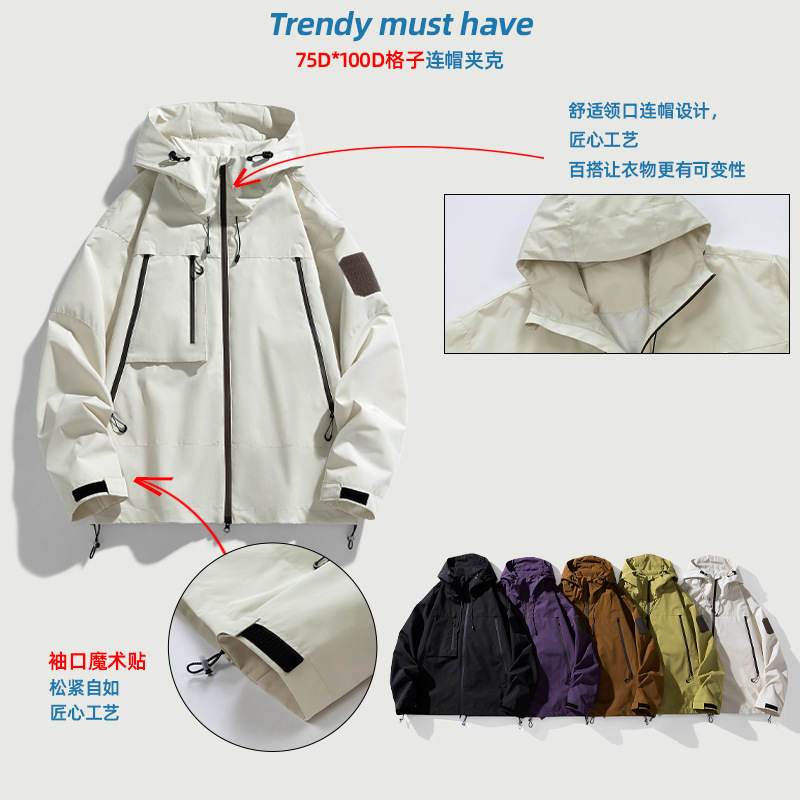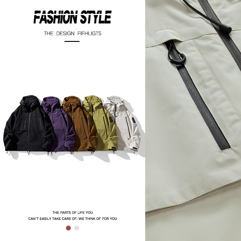 2023秋冬の新型防風防水アメリカカップル屋外突撃服コート男性フード付き純色ゆったり旅