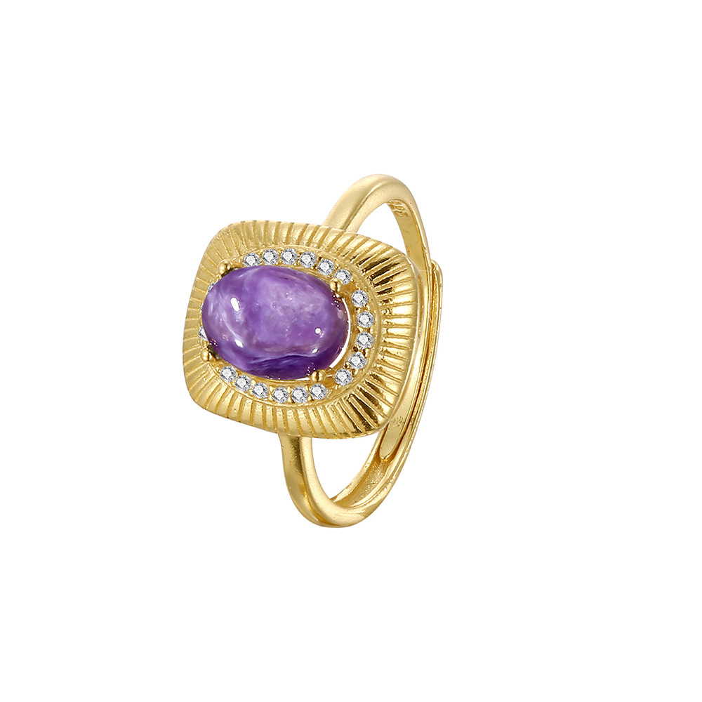 S 925純銀は天然の紫龍晶の指輪をはめ込んで羅石のファッションの気質の女性の金の18kの金メッキの九紫を調べて火から離れます。