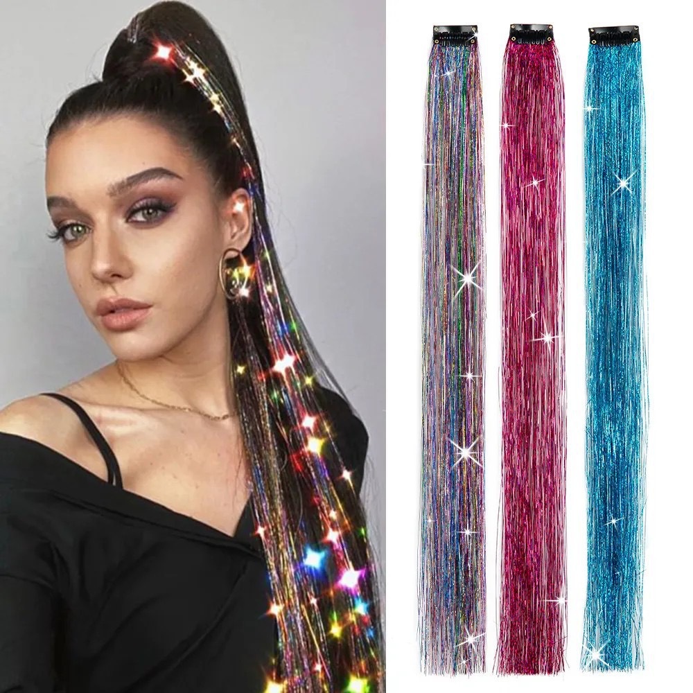クロスボーダーの外国貿易のまぶしいレーザーの髪のカラーの1つのクリップの髪の切れのまっすぐな金糸の七彩の明るい糸はレーザーの髪の切れを発射します。
