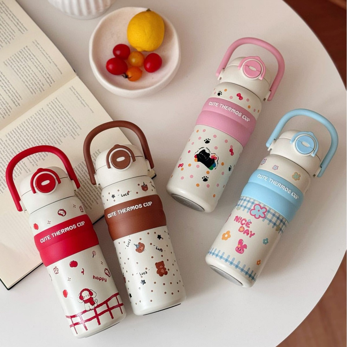 316不锈钢保温杯大容量3D打印女学生吸管杯冷热两用卡通拎拎水杯