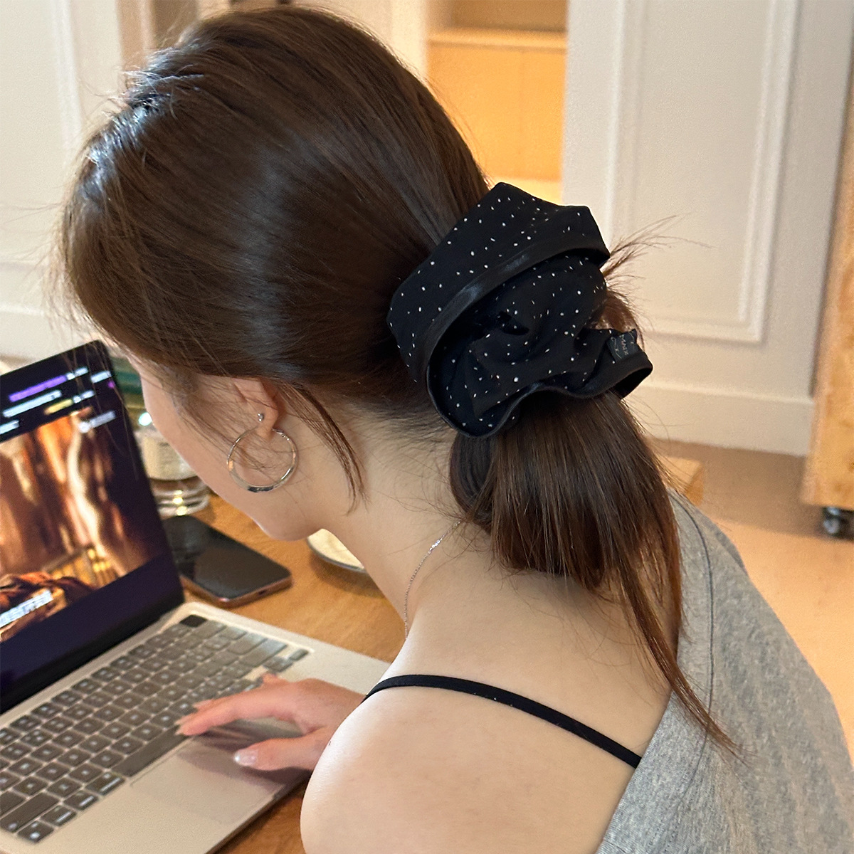 赵露思许妍同款波点黑色大肠发圈女2025新款高级感慵懒风发饰头绳