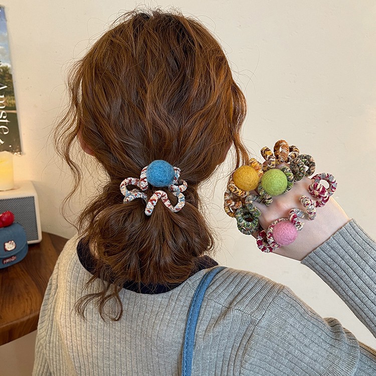 彩色毛毡球电话线发圈女高弹力耐用扎头发绳高级感百搭头绳发饰秋