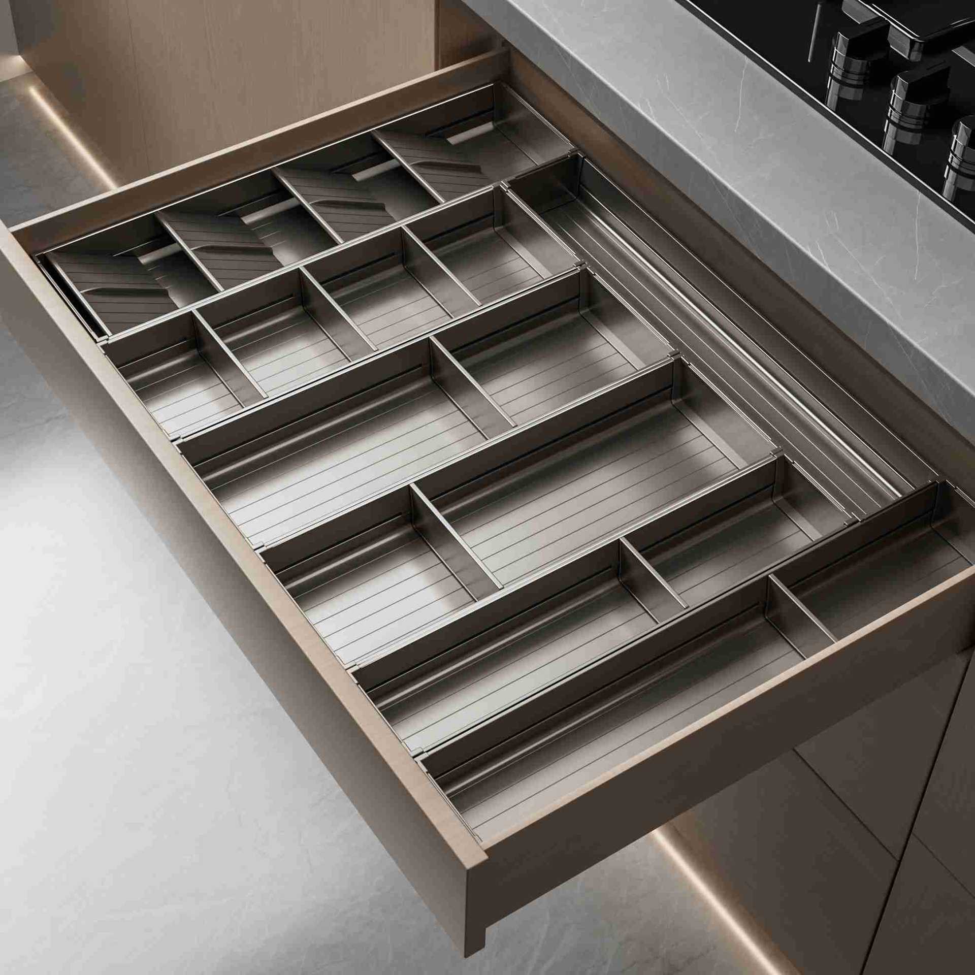 キッチン引き出し収納仕切りキャビネット内蔵カトラリー収納ボックス、多機能スペースアルミ製