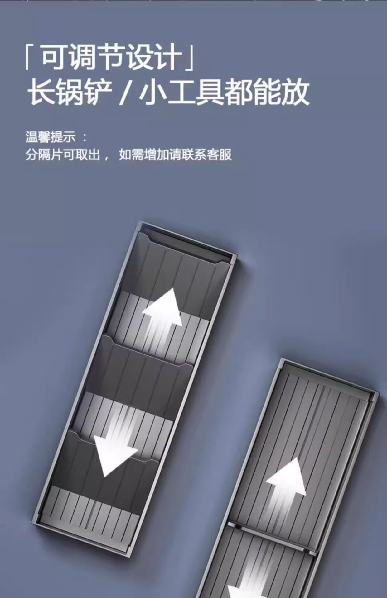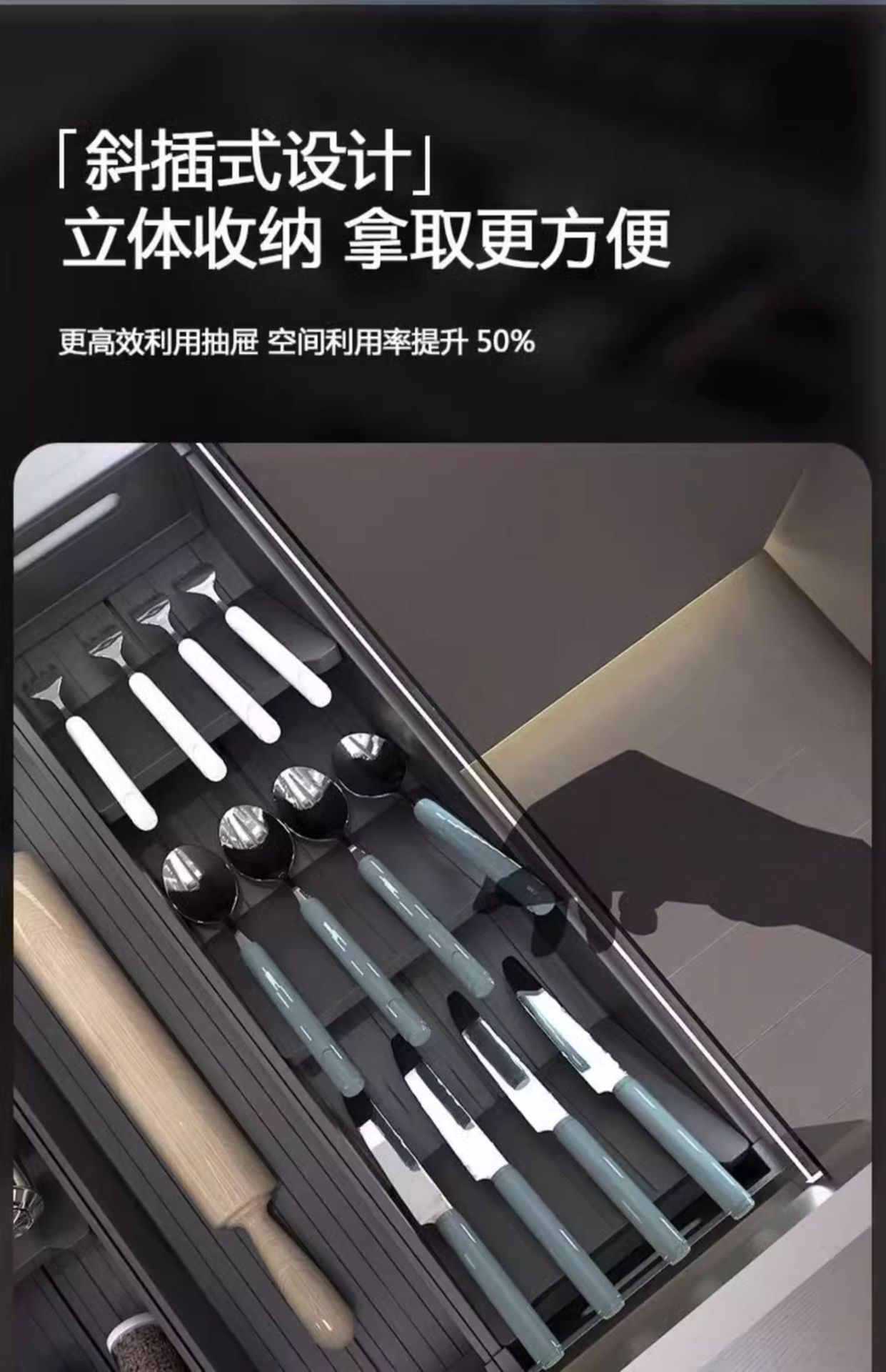2025新款枪灰厨房抽屉收纳分隔板橱柜内置分格铲子筷子勺子收纳盒