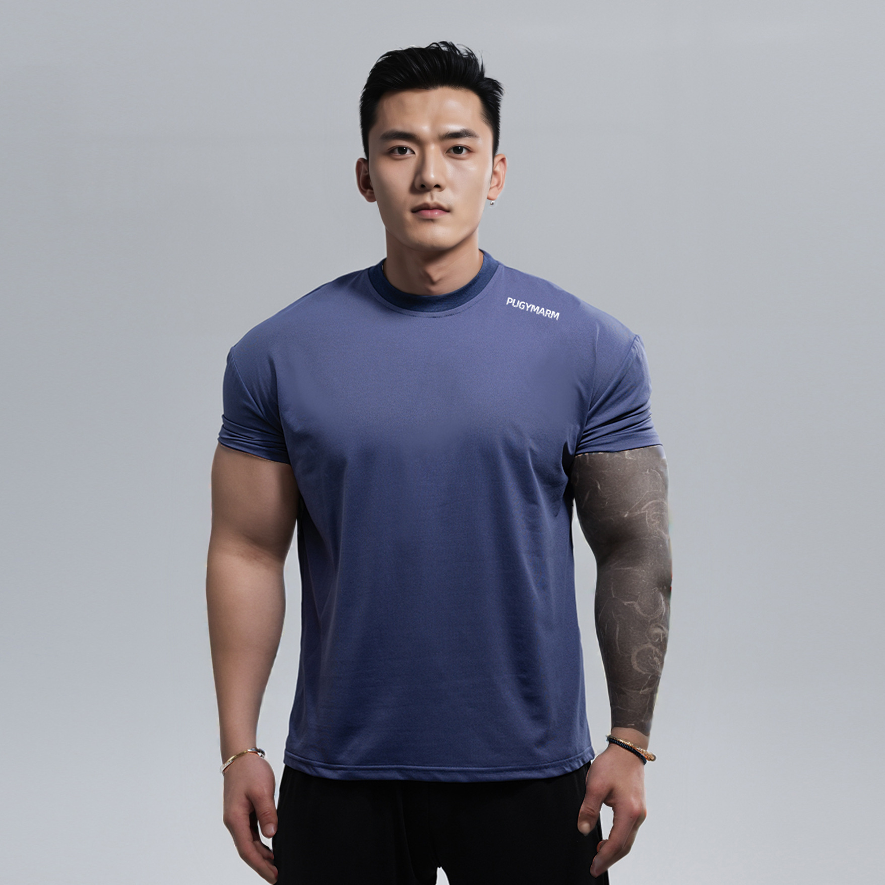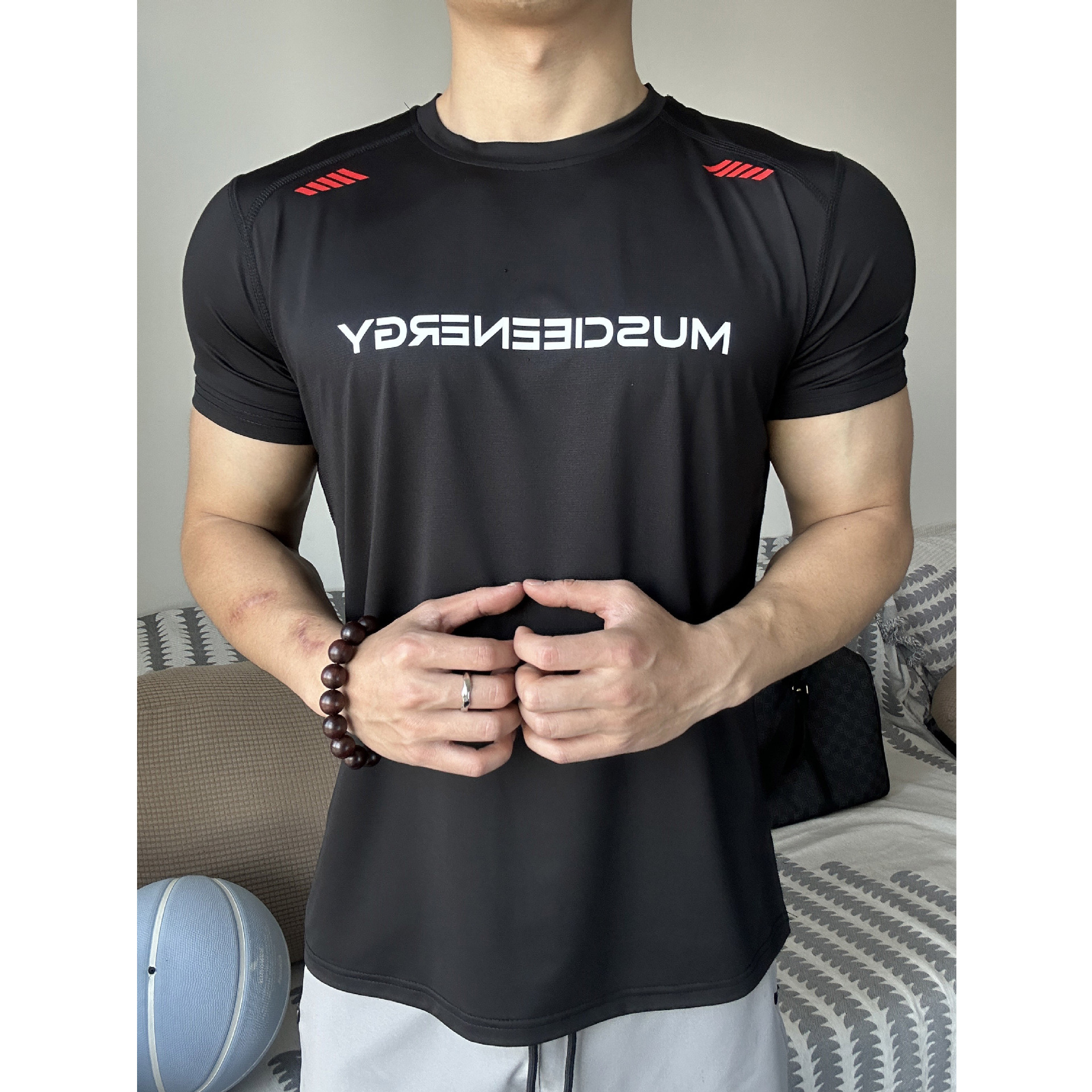新型スポーツ半袖男性速乾弾力吸水排汗丸首フィットネス屋外カジュアルパンツスポーツtシャツ
