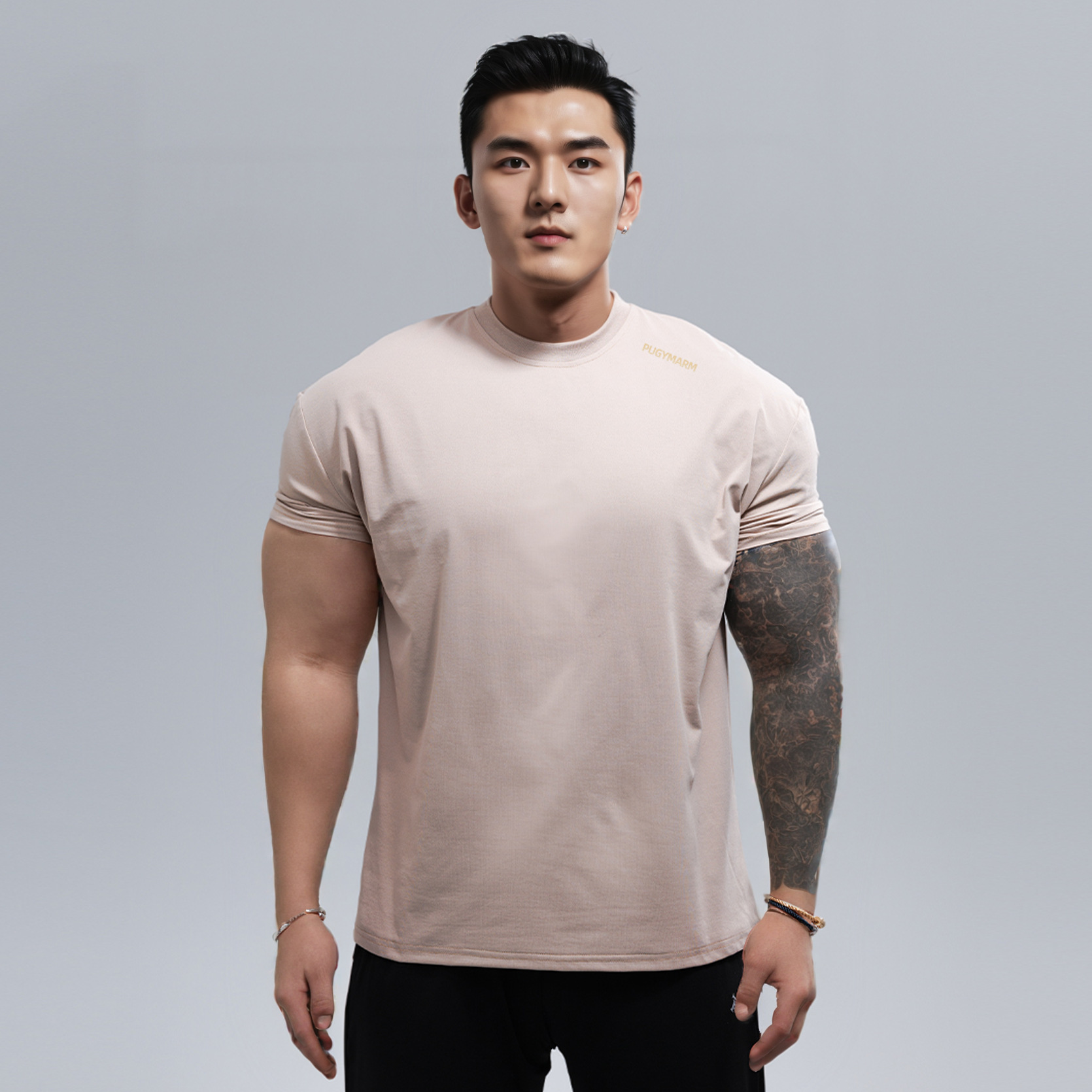 筋肉運動ゆるい綿質フィットネス半袖男性バスケットボール秋ランニングトレーニング弾震え音暗号化出荷