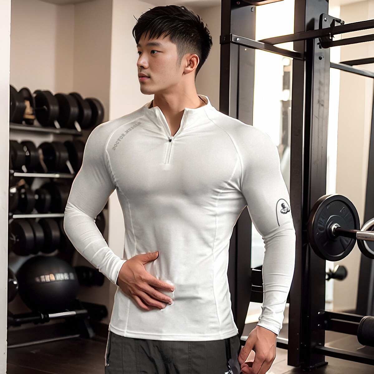 GYMARM春のソフトシェルクローン綿の半分の襟/丸首の修身カジュアルなフィットネスの高弾は底の長いtを打ちます。