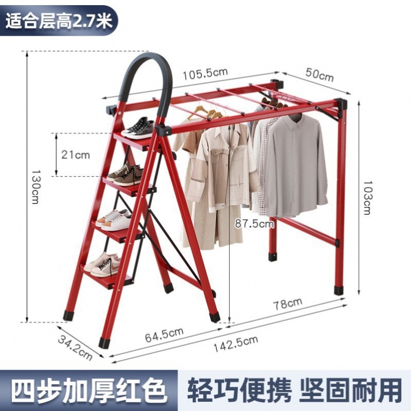 はしごハンガー両用折り畳みハンガー活動家庭用家庭用人字はしご棚は5歩階段を登る