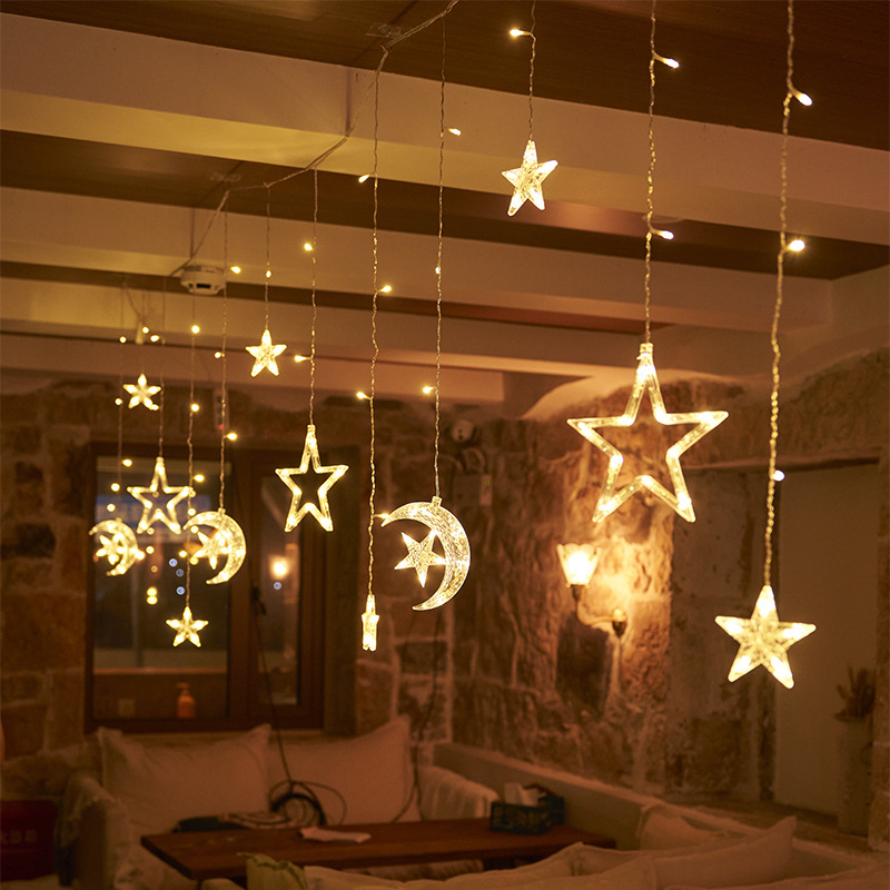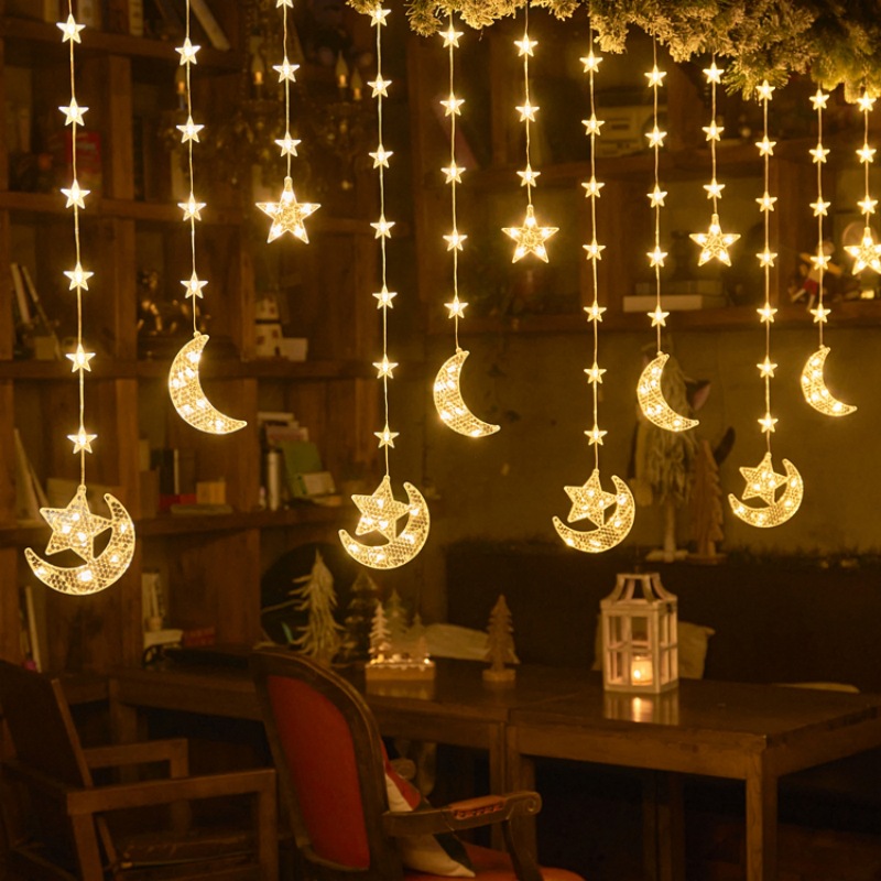 LED月抱星窗帘灯 星星灯露营氛围灯卧室装饰生日场景布置满天星灯