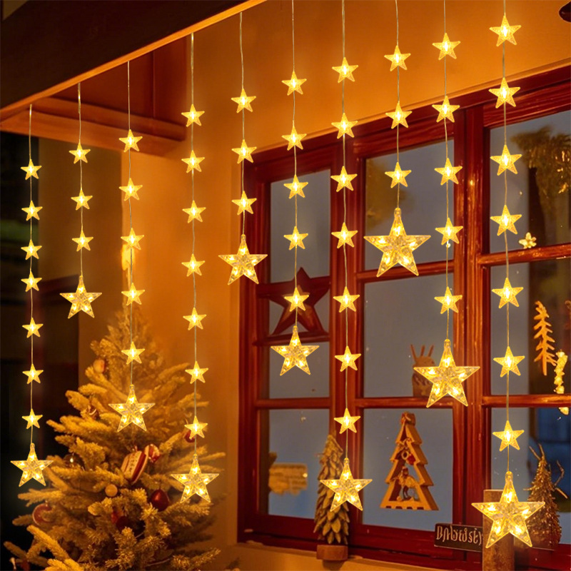 跨境LED太阳能星月窗帘灯星星灯圣诞户外庭院节日装饰灯露营彩灯
