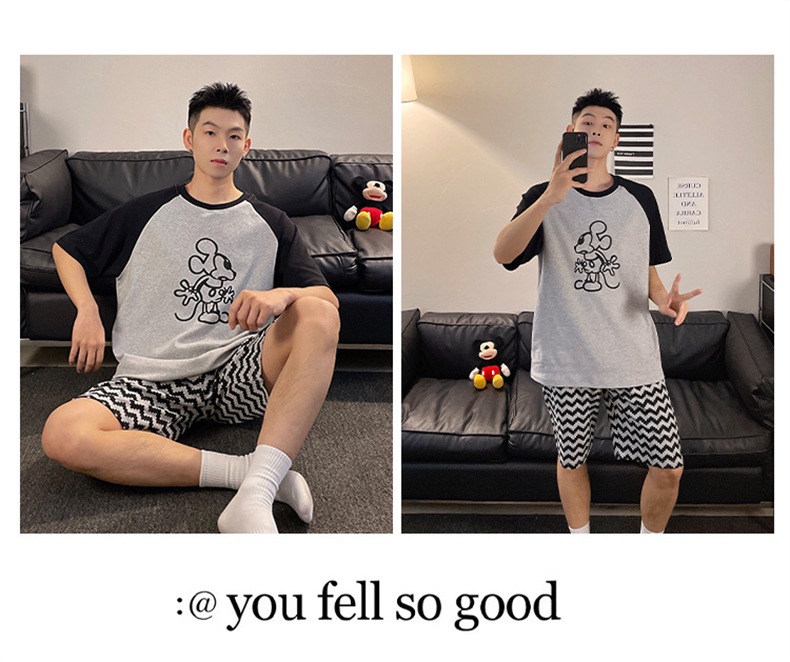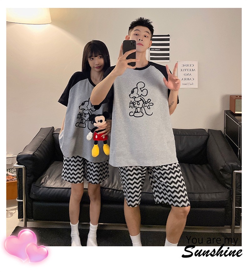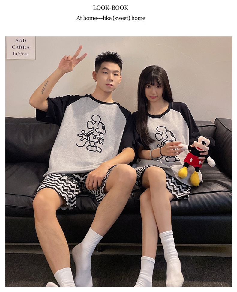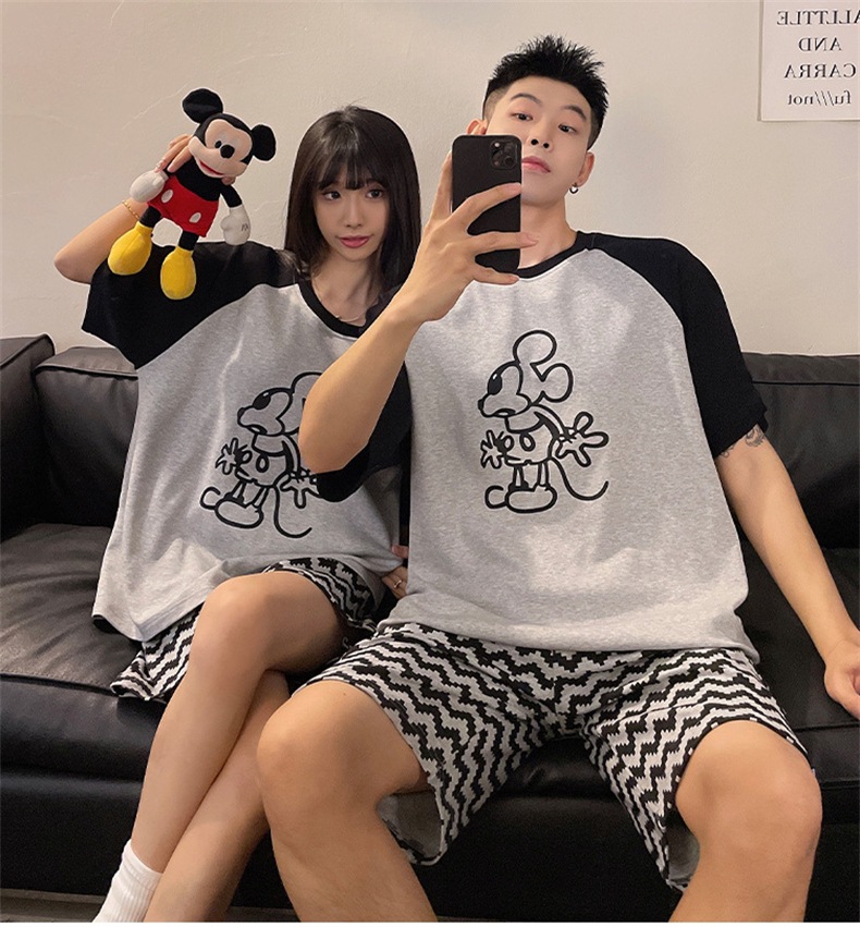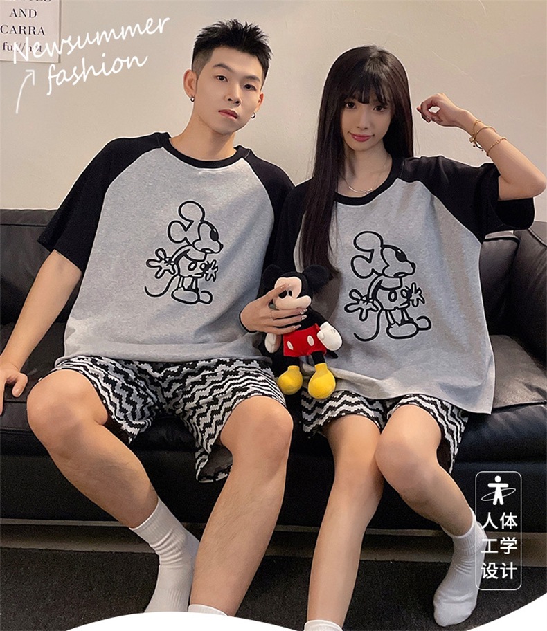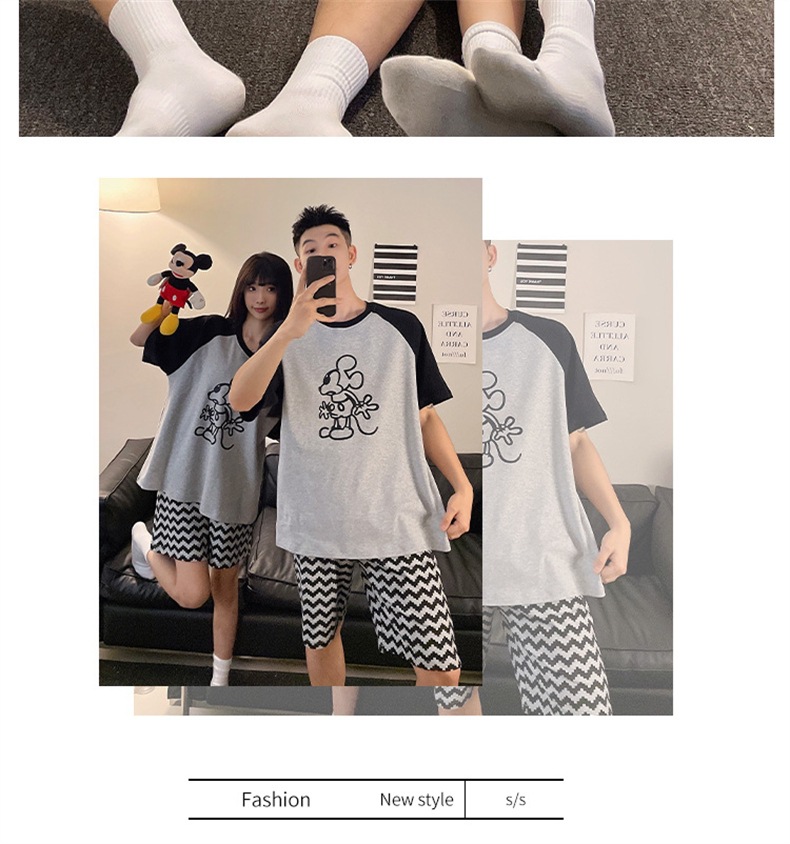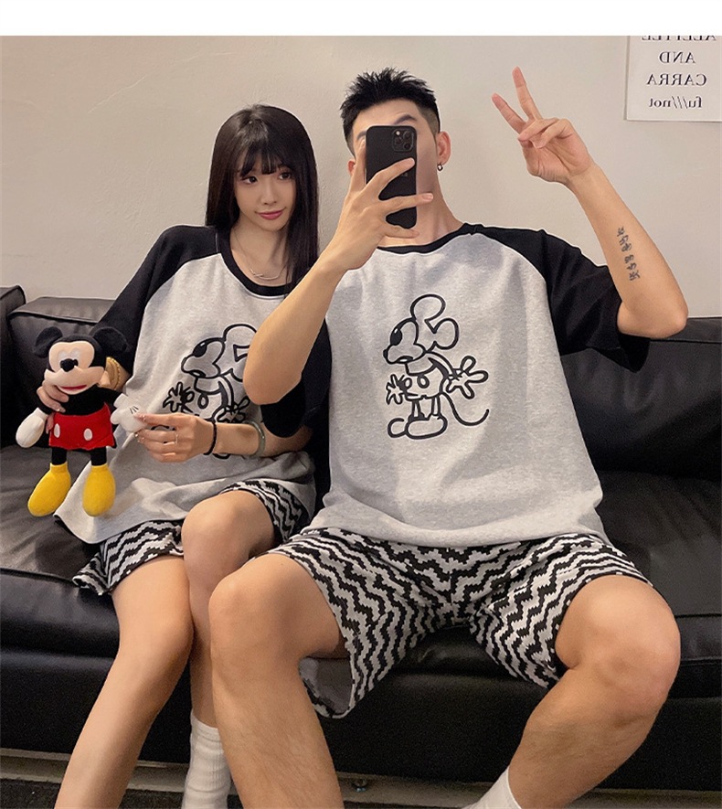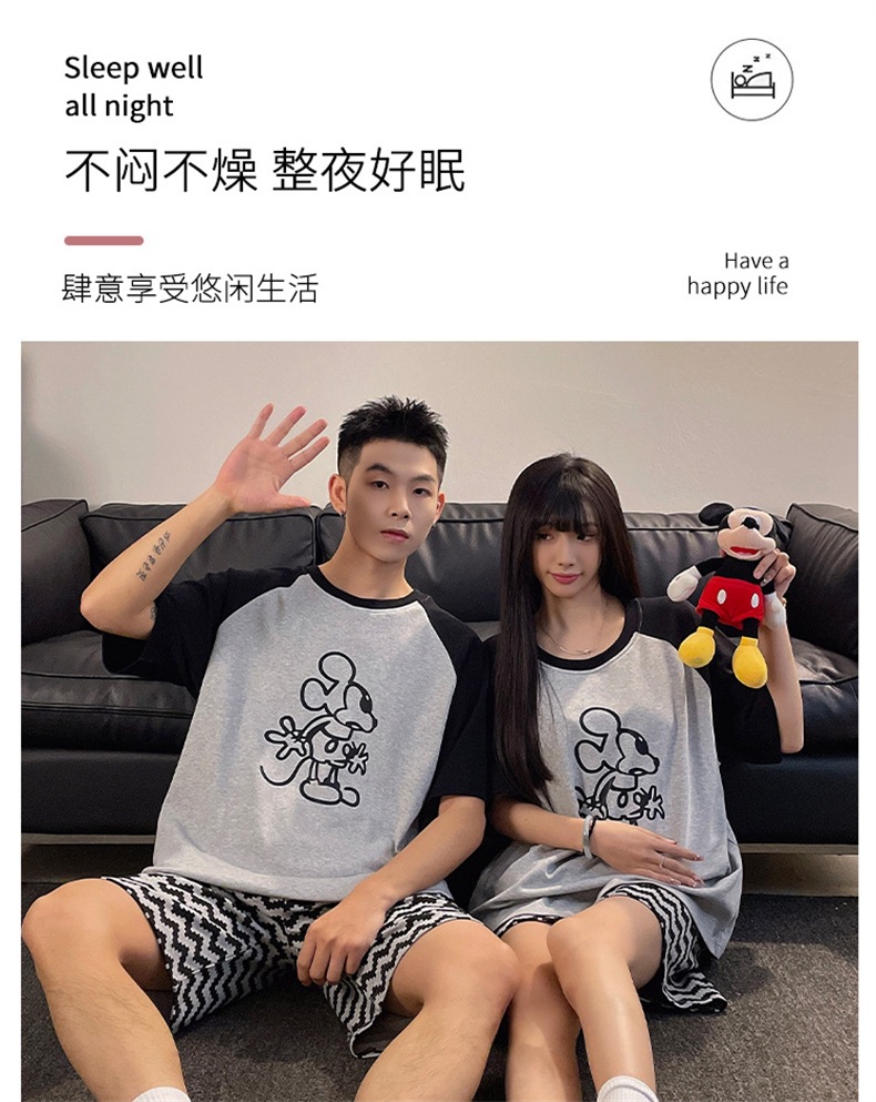 実体店の夏のカップルのダブルパジャマ男性カジュアル風女性パジャマ胸パッド付きのフレームは綿のスーツに似せている